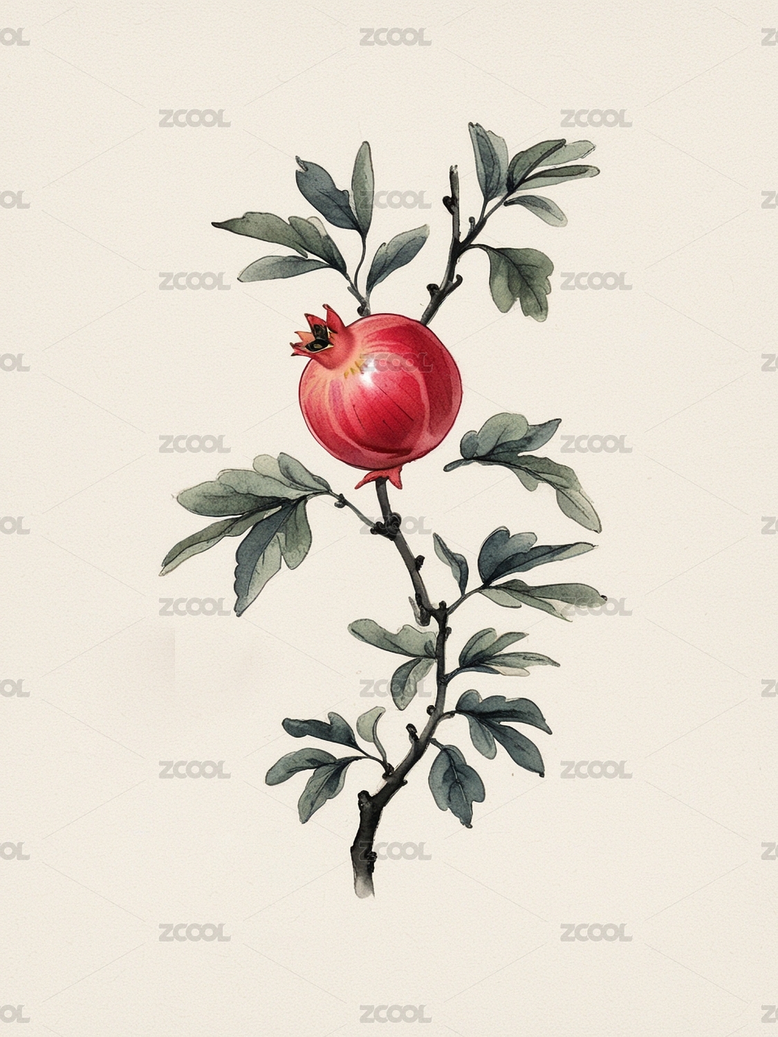 石榴,水果,水墨画,中国风,国画,写意,插画,插图,工笔,果实