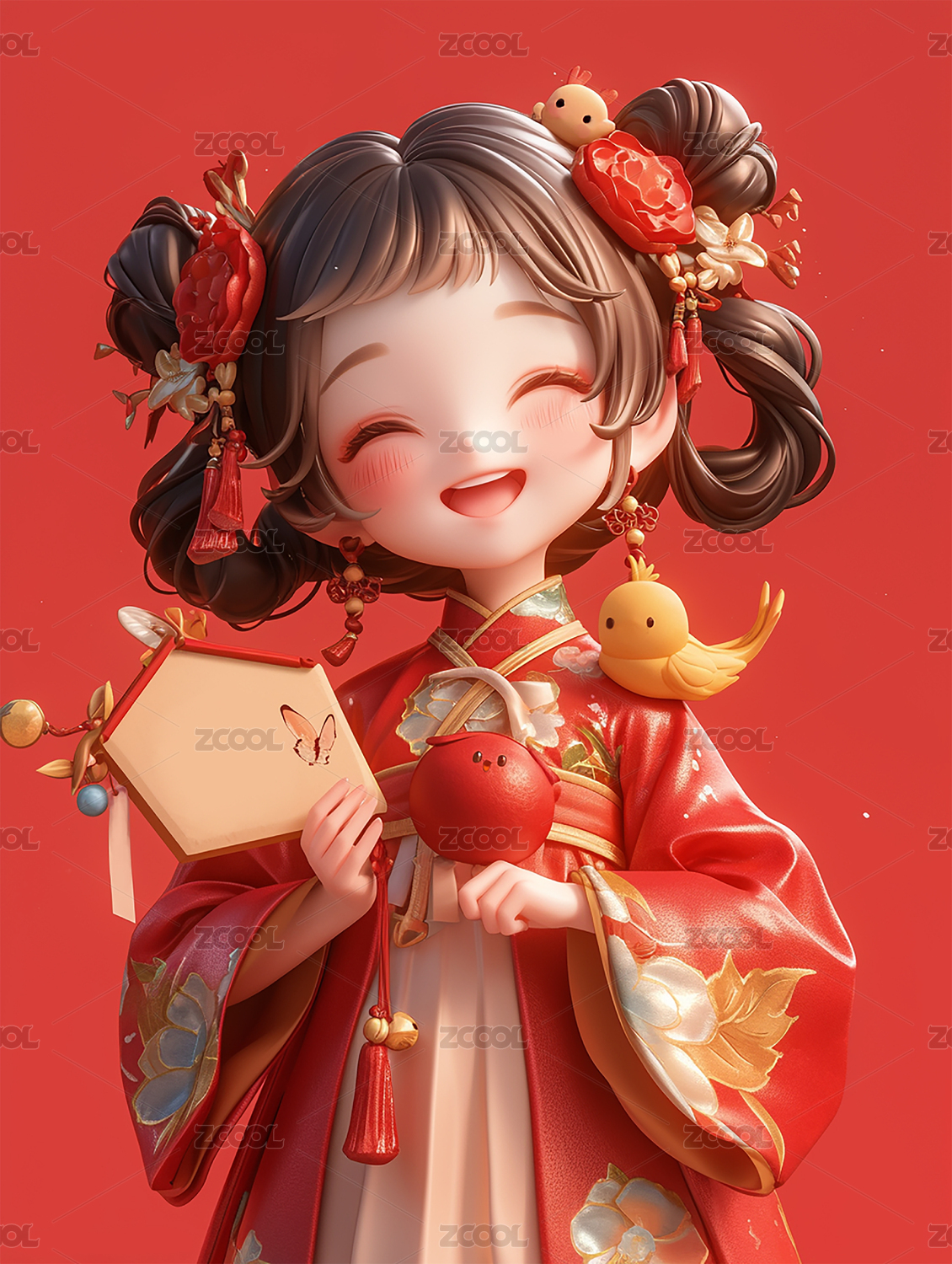 插画类 蛇年 春节 人物IP 快乐 团圆