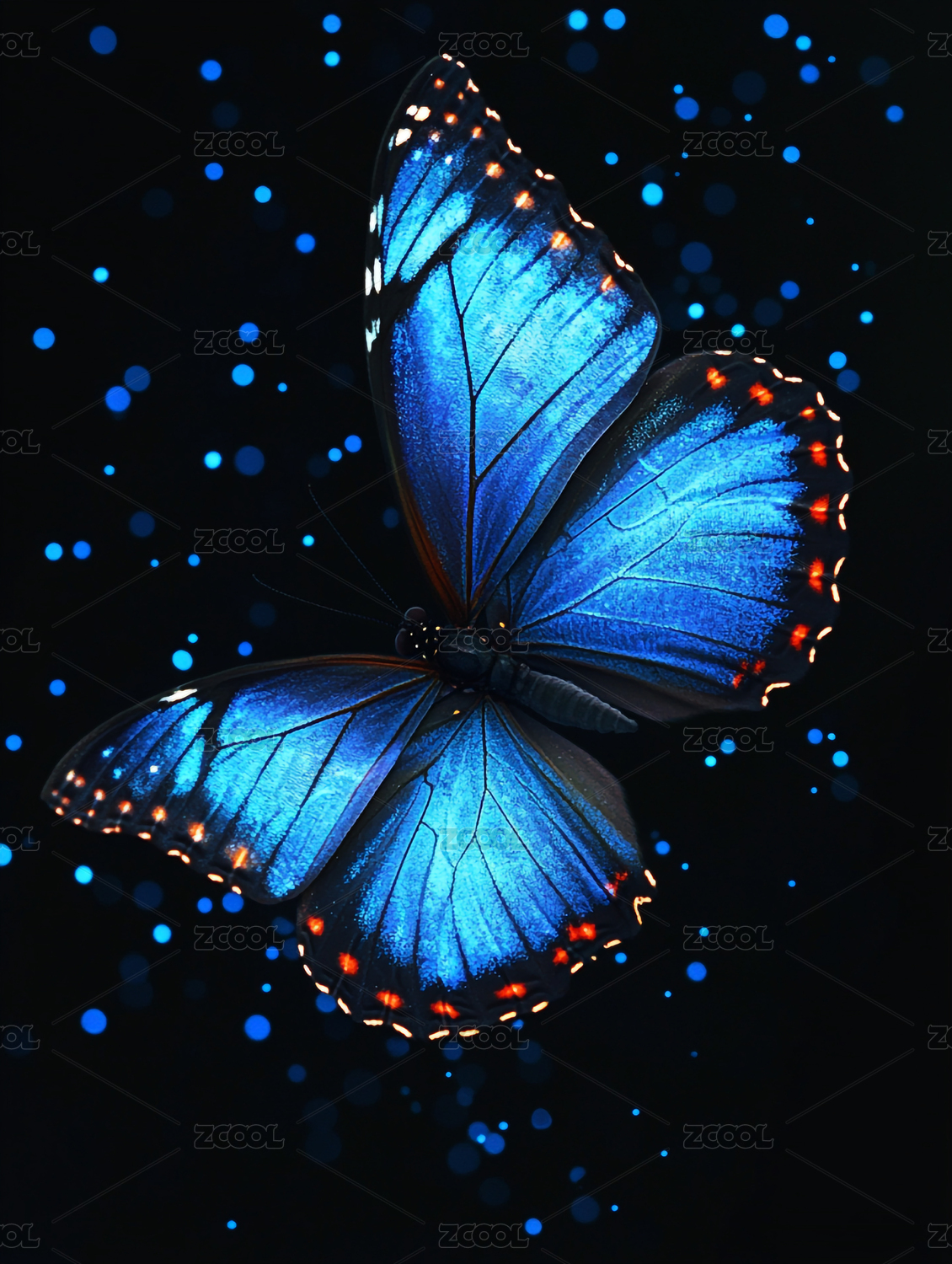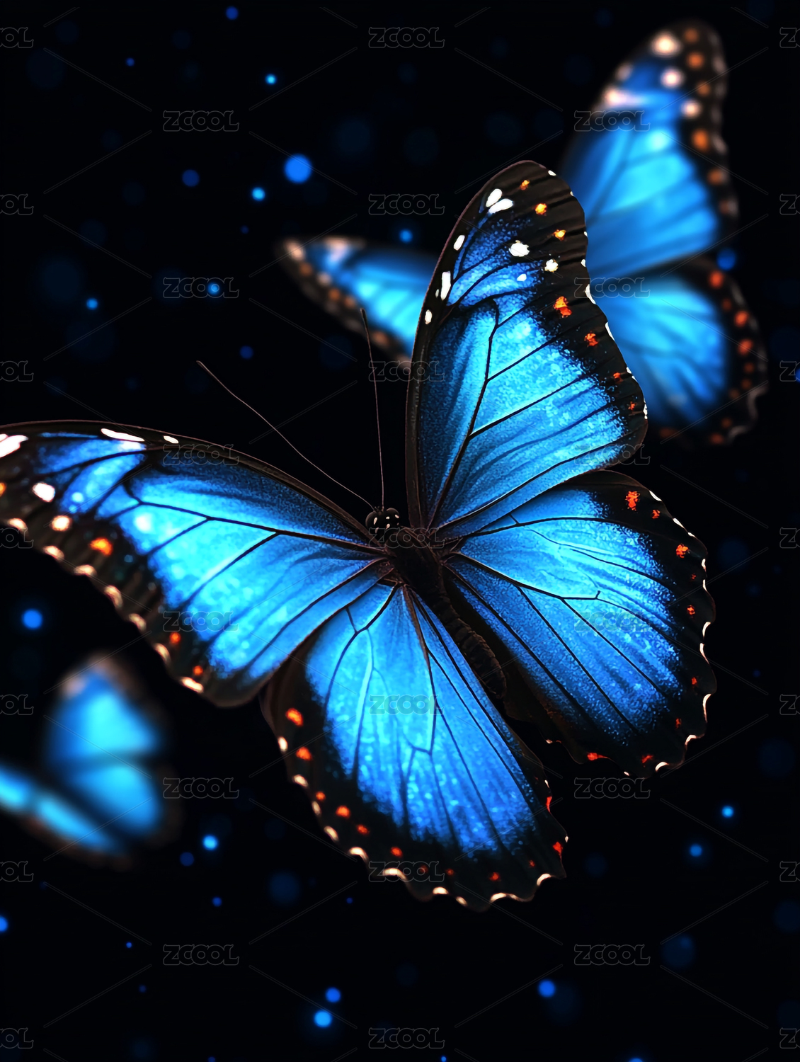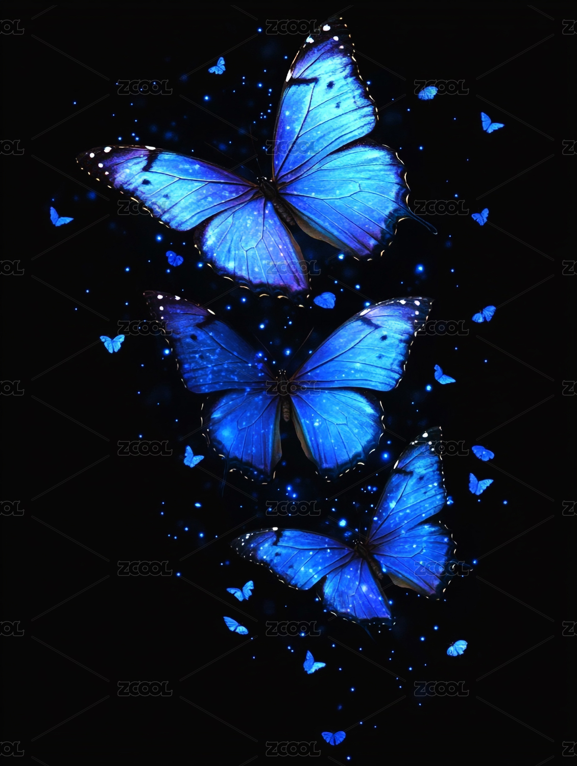 蓝色写实荧光蝴蝶闪光唯美壁纸