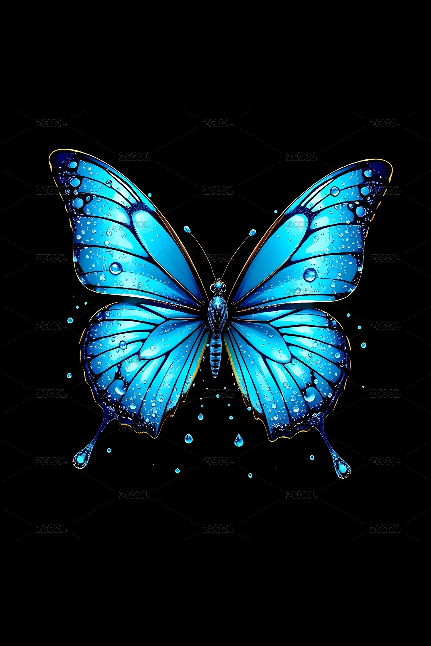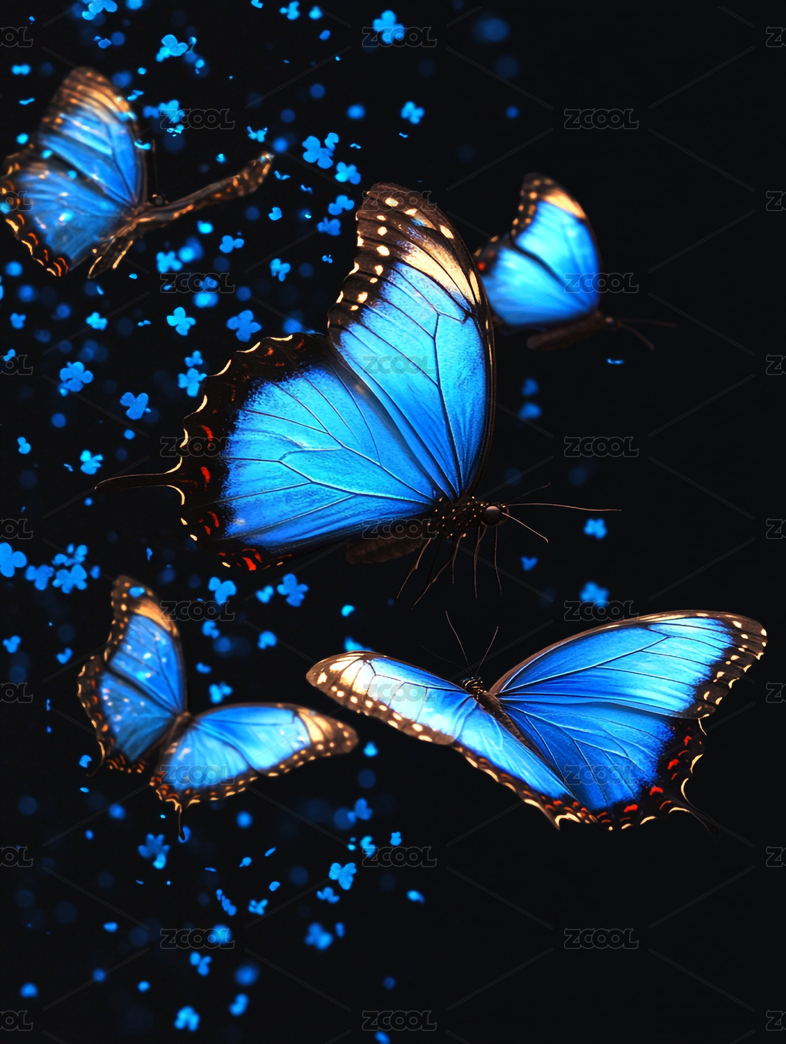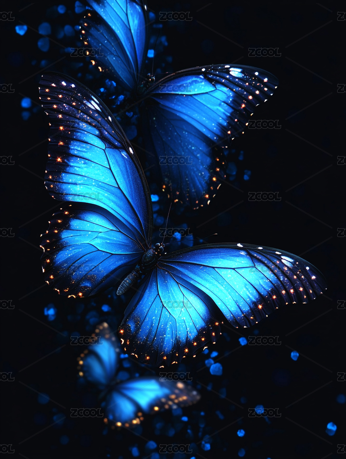 蓝色写实荧光蝴蝶闪光唯美壁纸