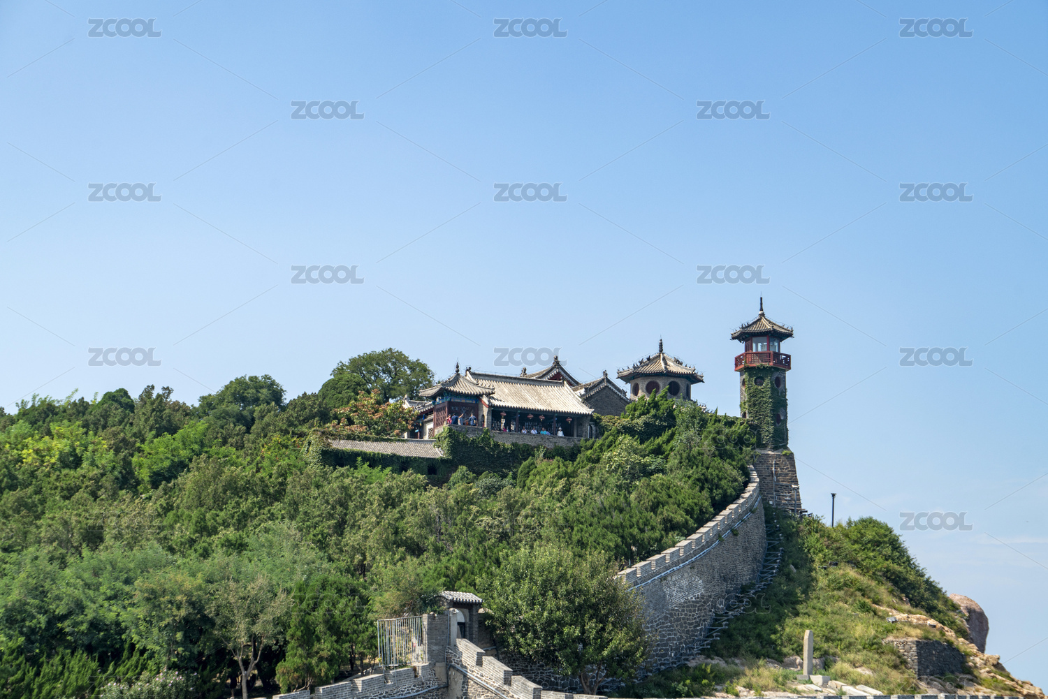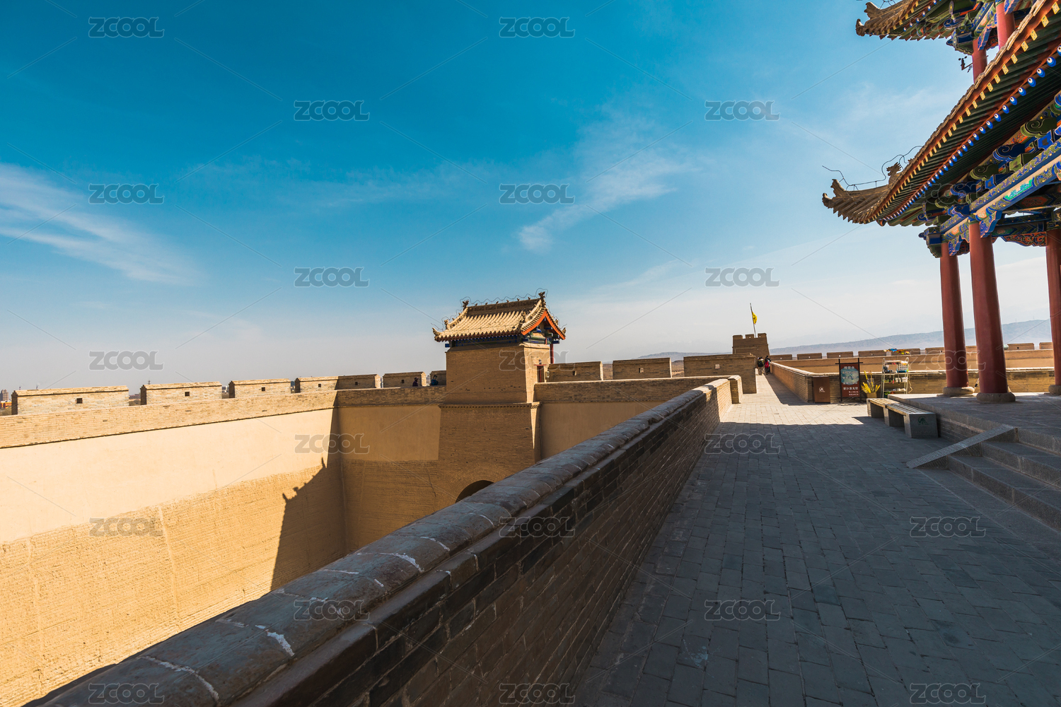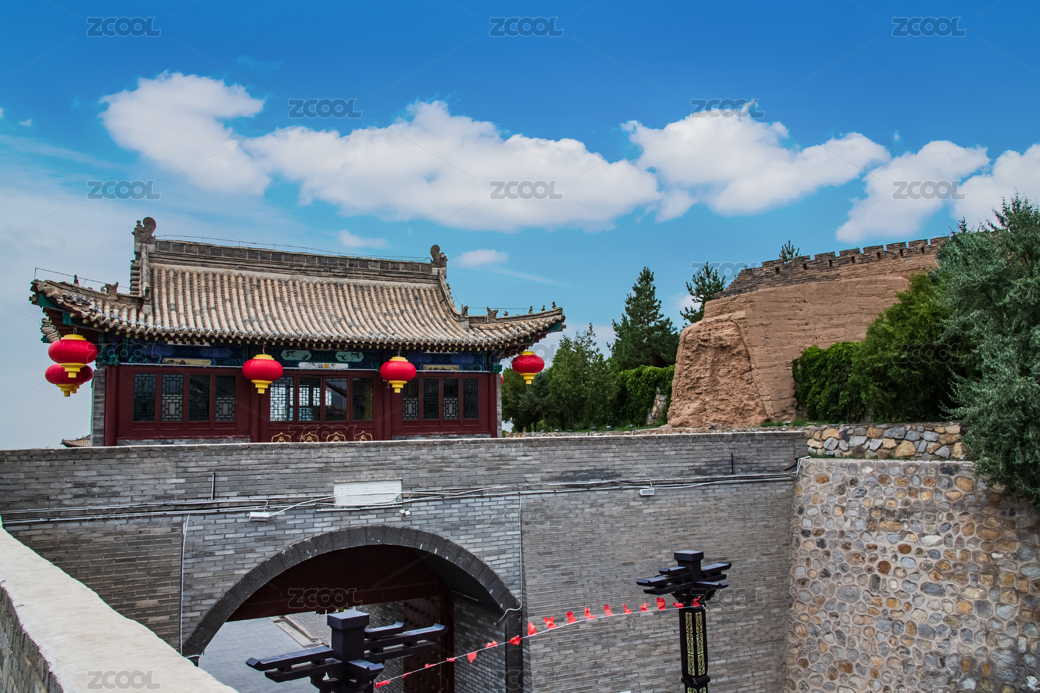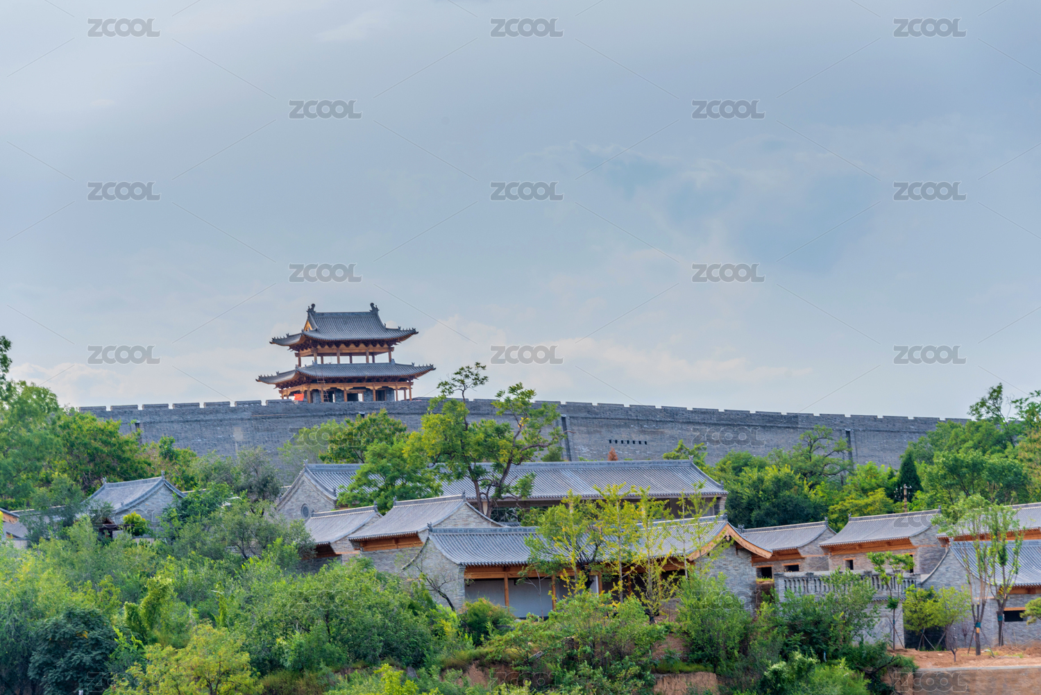 中国山西省代县城区明代古城墙园林建筑