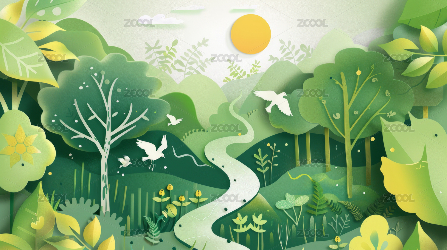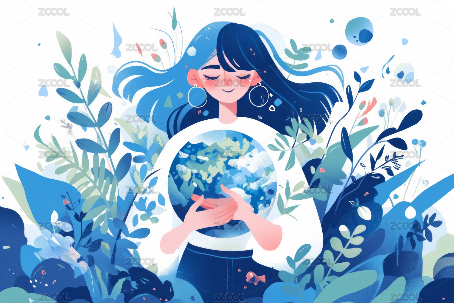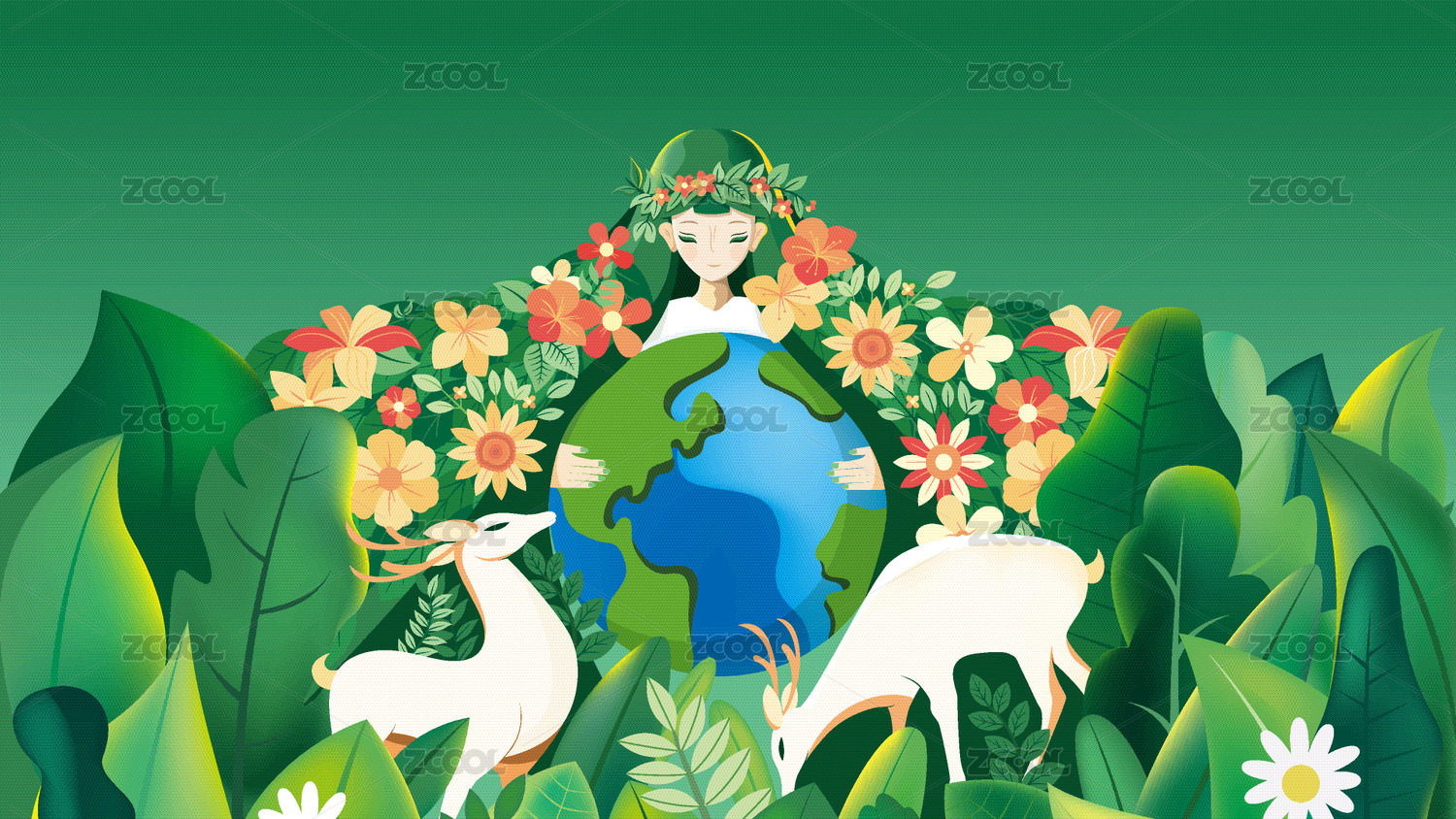 保护,环境,地球,植物,绿色,环保,鹿,麋鹿,守护,插画