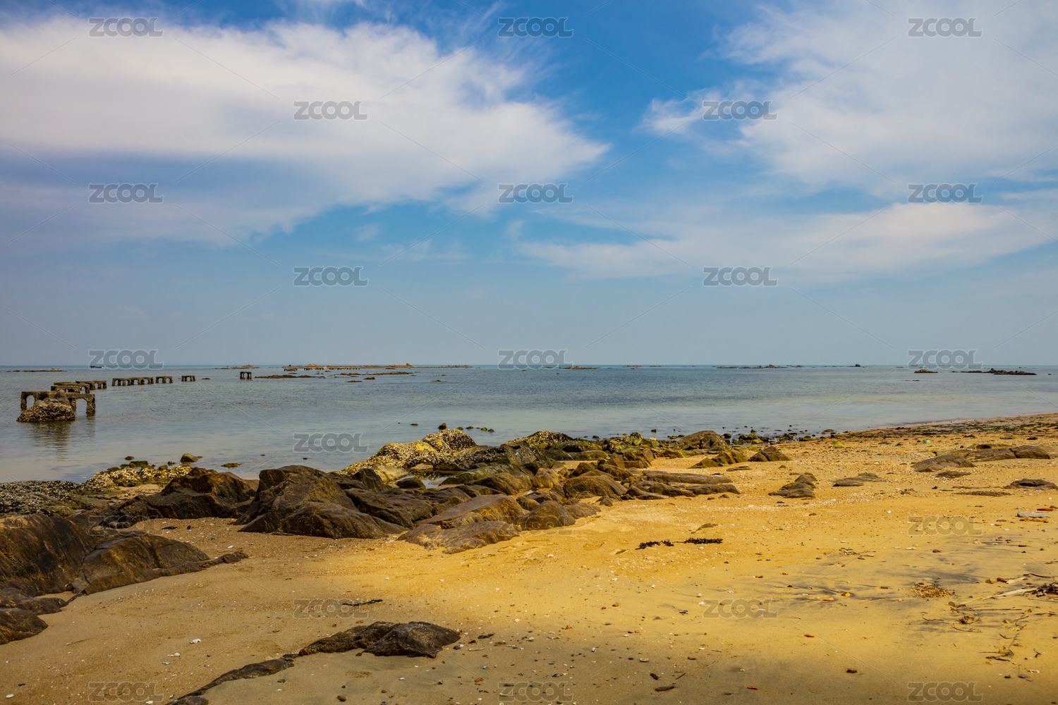 蓝天白云下的北海沙滩海边