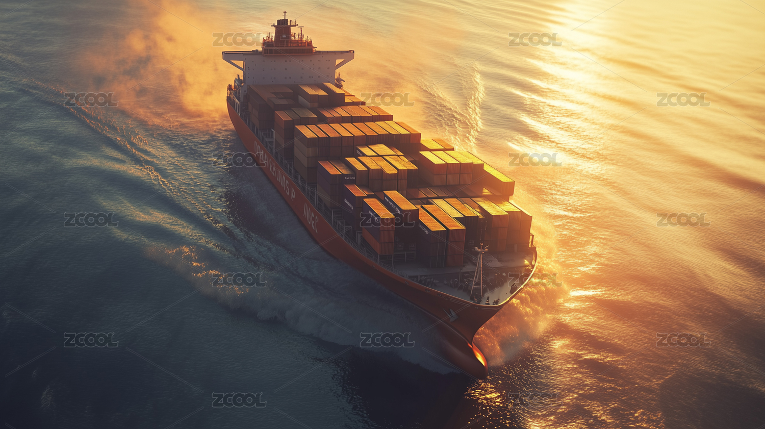 远洋集装箱货轮航行在大海上