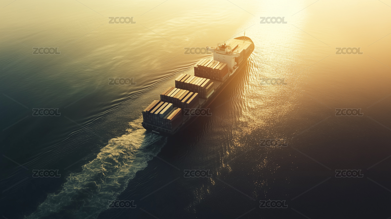 集装箱货轮航行在深蓝色海洋中