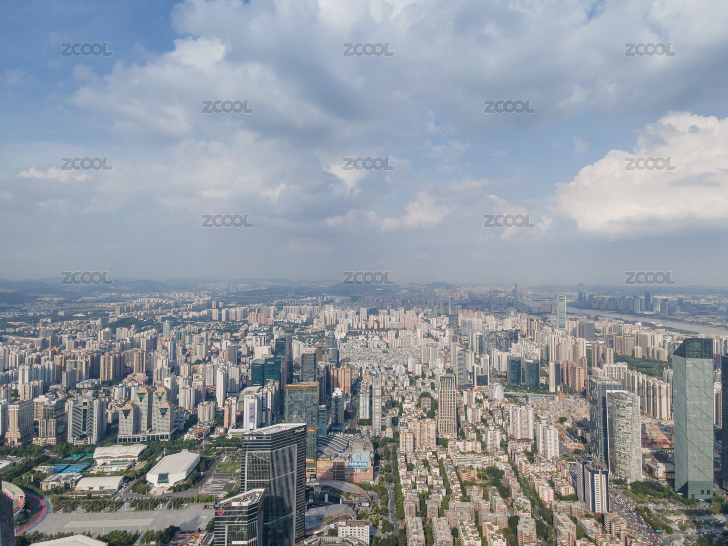 航拍鸟瞰视角珠江新城CBD天际线城市