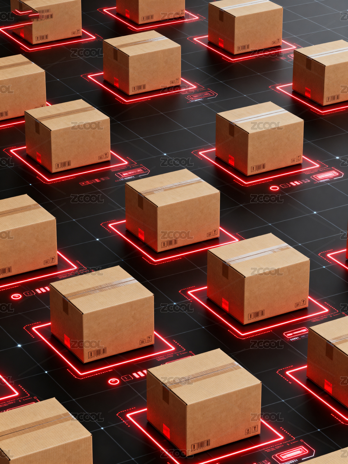 快递包裹在高科技的环境下运输,网上购物,物流自动化管理理念。