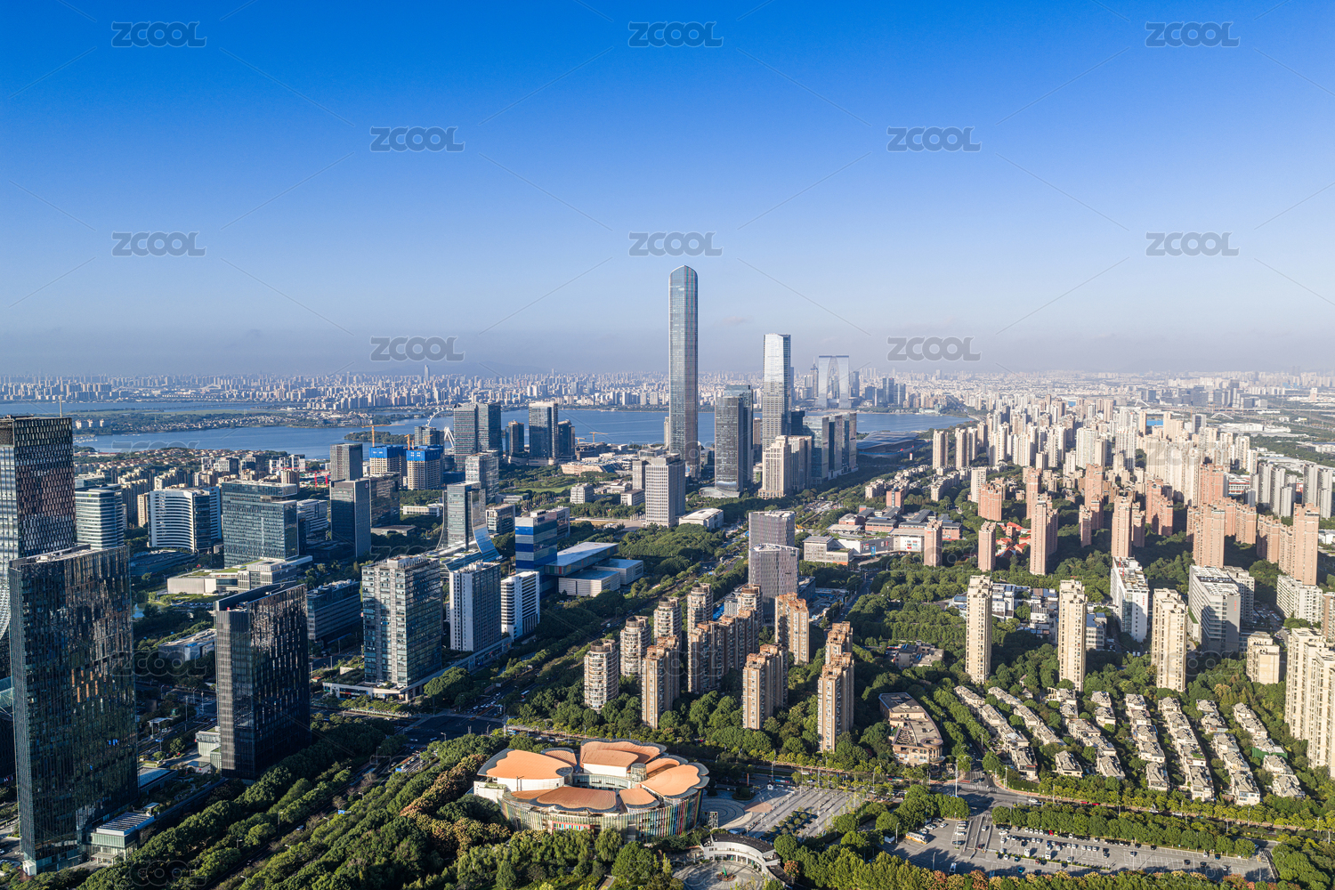 航拍中国江苏苏州东湖国际金融中心办公楼