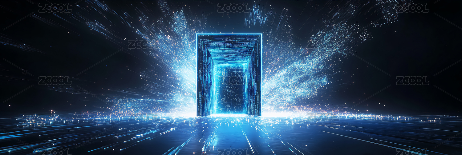蓝色光束隧道通往未来的星际通道