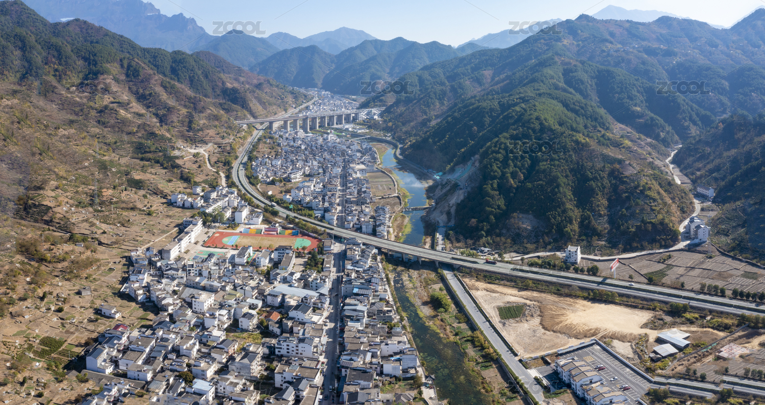 航拍秋季蓝天下中国北京门头沟村庄公路