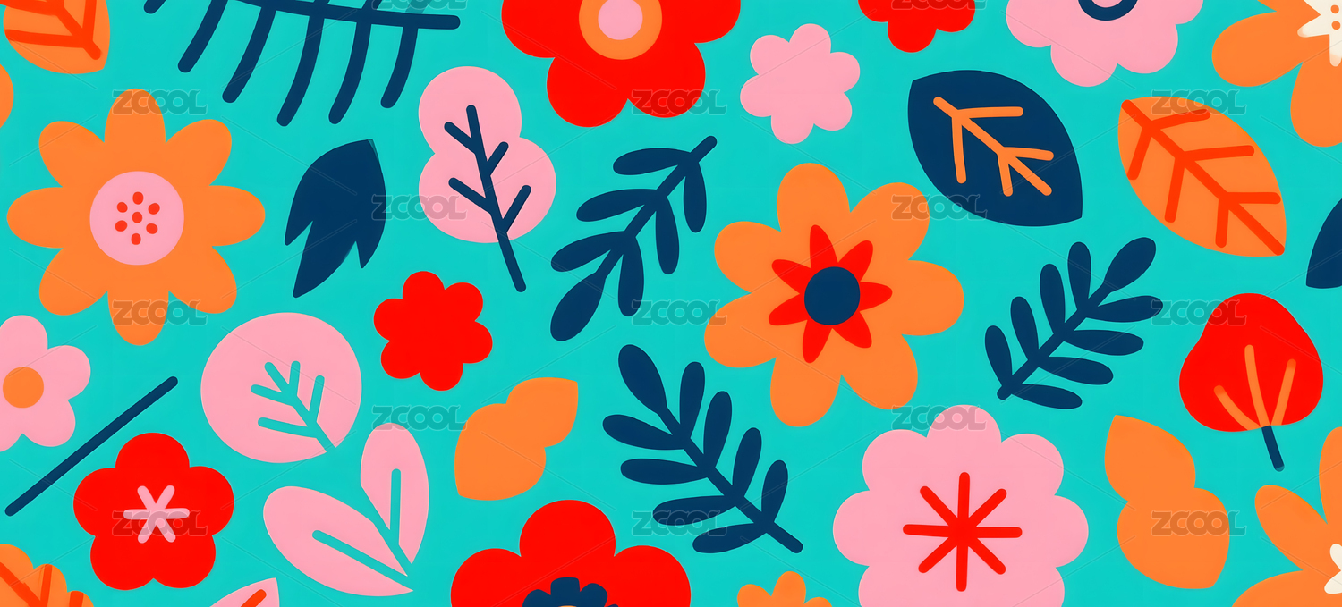 多彩花卉叶片图案