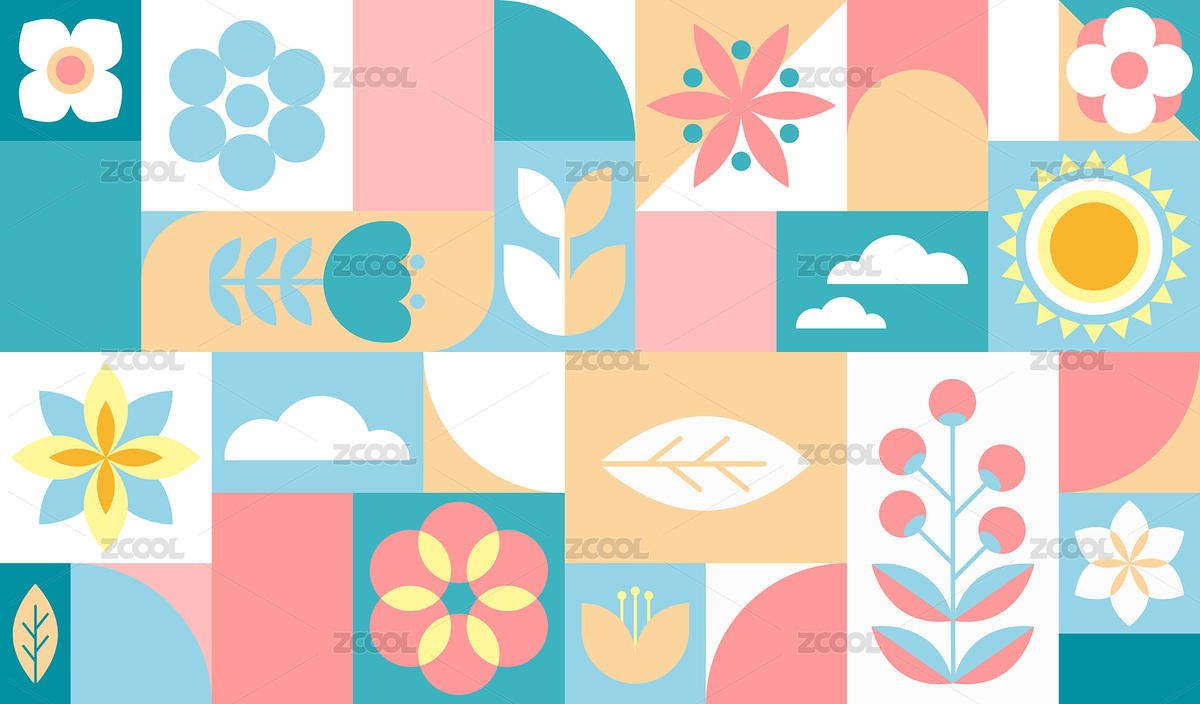 几何,艺术,色块,花,植物,叶子,扁平,春天,夏天,秋天