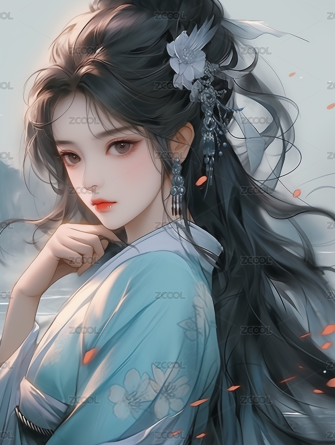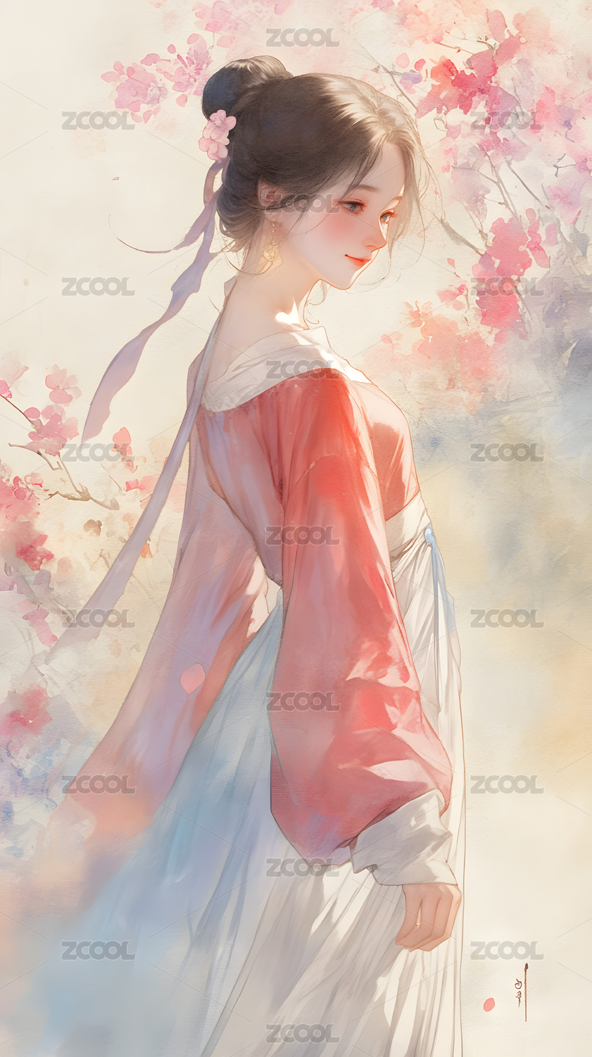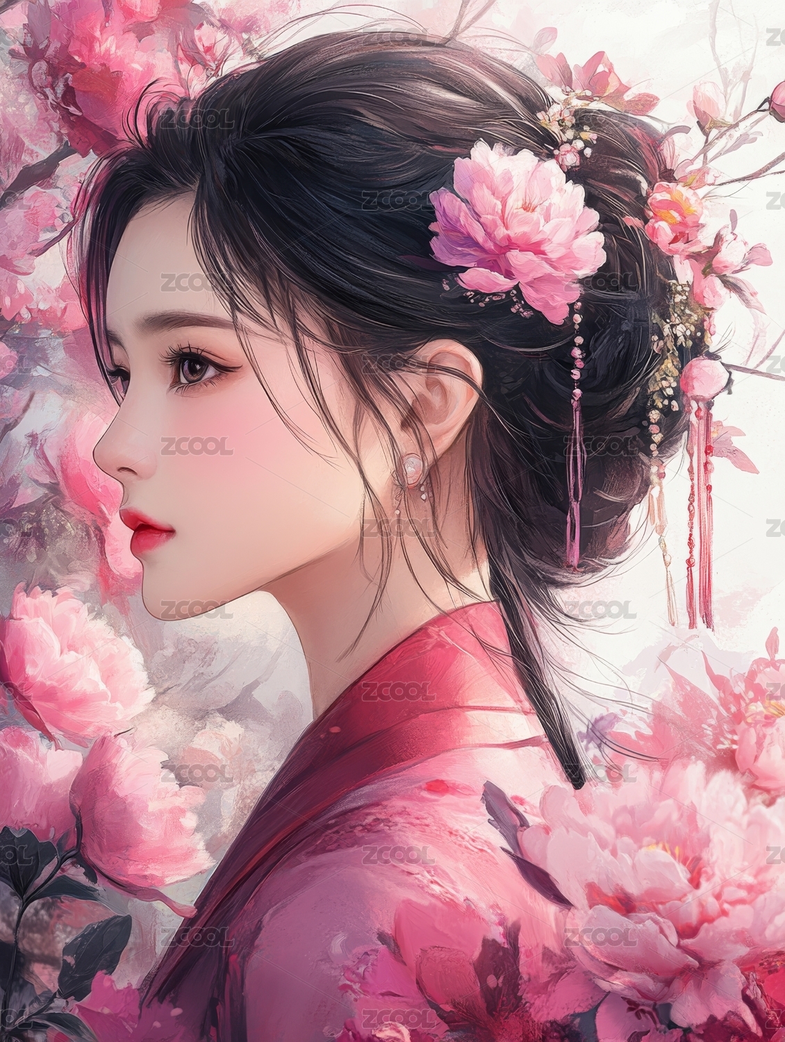 粽发玫瑰女孩浪漫唯美动漫海报油画壁纸