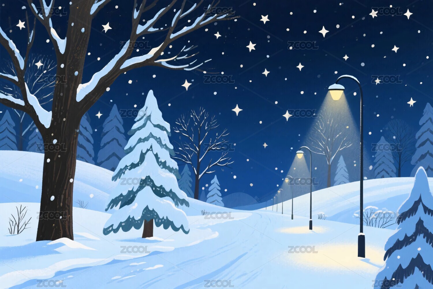 渲染,树木,艺术,绘画,灯光,雪花,浪漫,温馨,夜晚,寒冷