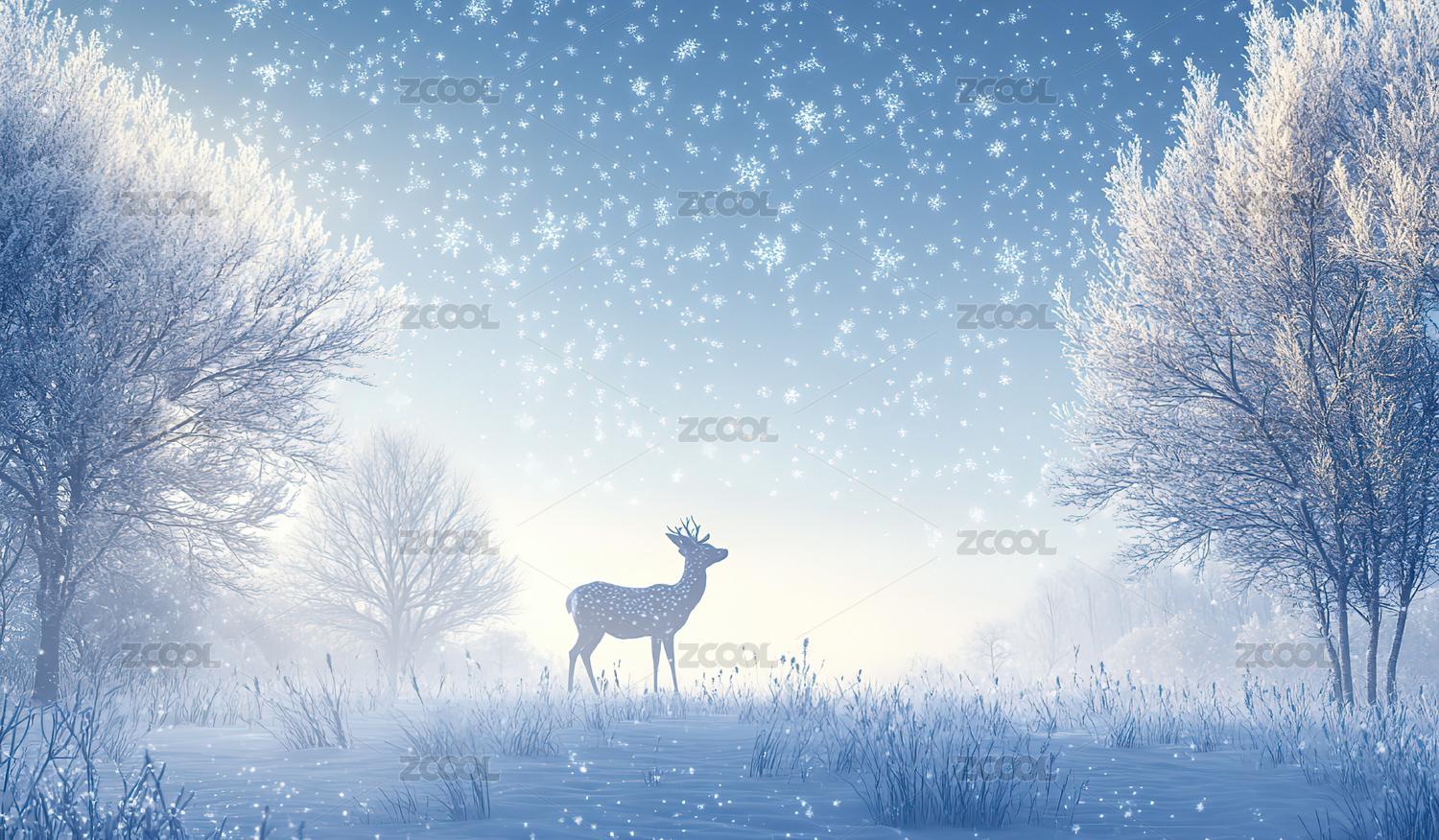冬日仙境中的雄鹿