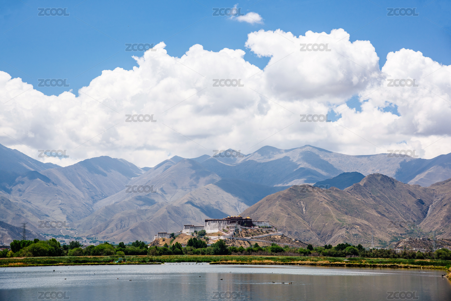 群山环抱下的中国西藏拉萨布达拉宫远景