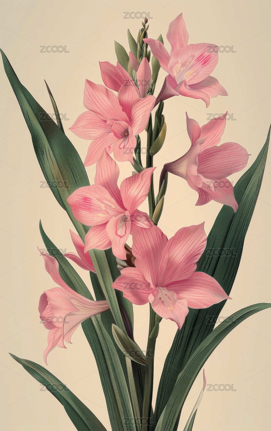 复古的兰花艺术插画背景