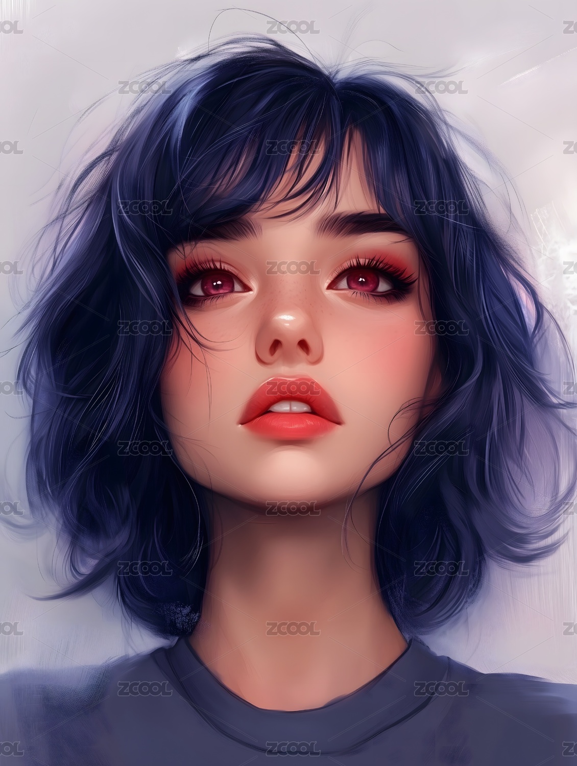 卷发,女孩,美女,少女,女生,竖构图,对视,插画,厚涂,长发