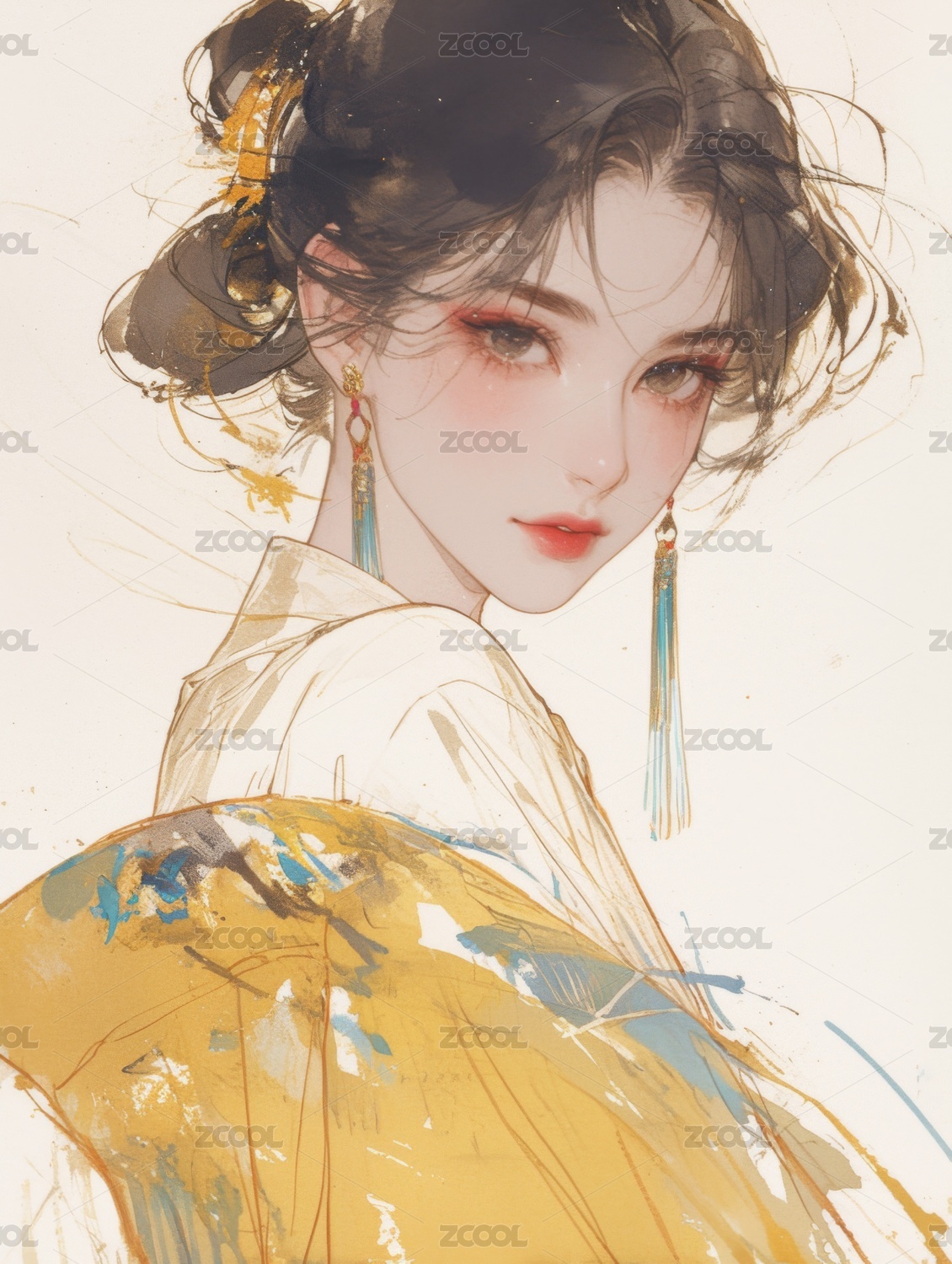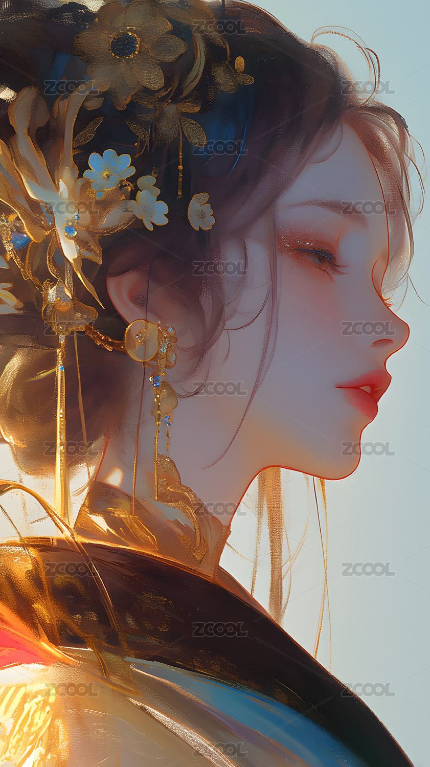 女孩,对视,女生,美女,近景,盘发,竖构图,古风,古装,汉服