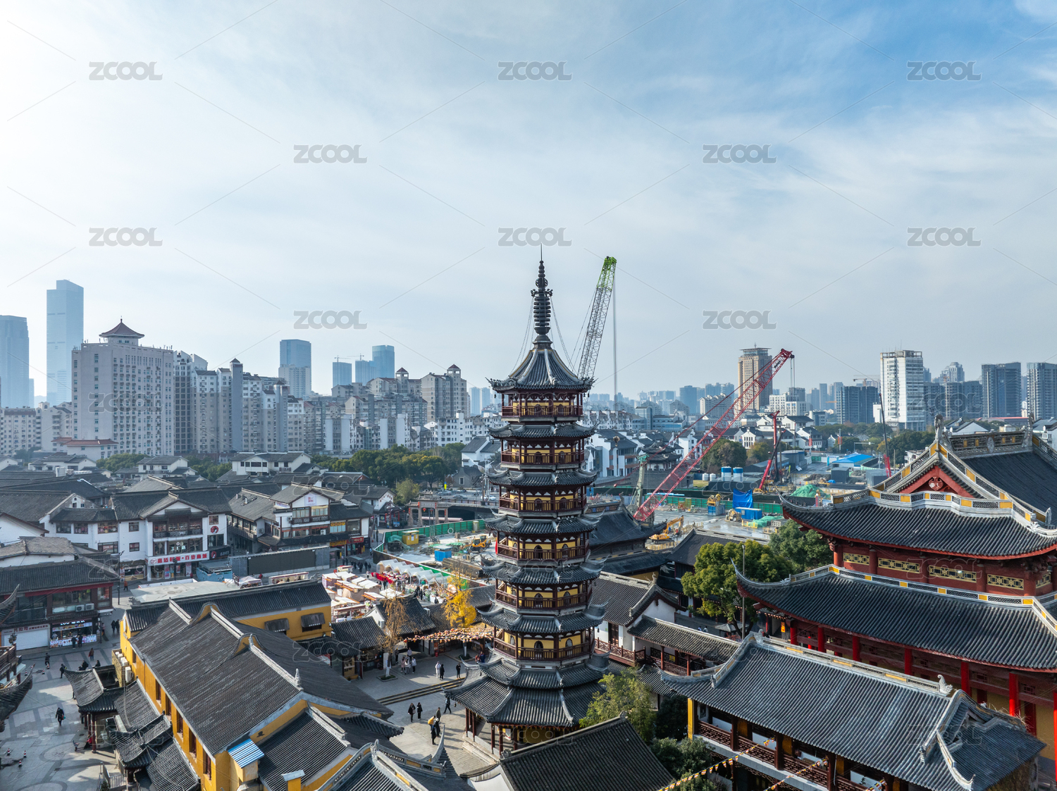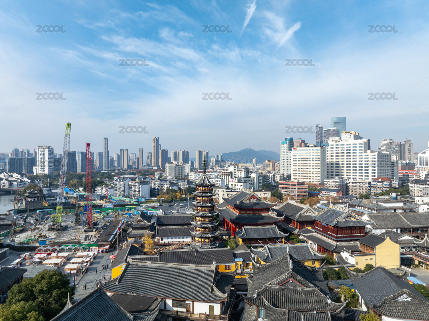 江苏省无锡市南禅寺古建筑和市中心风光