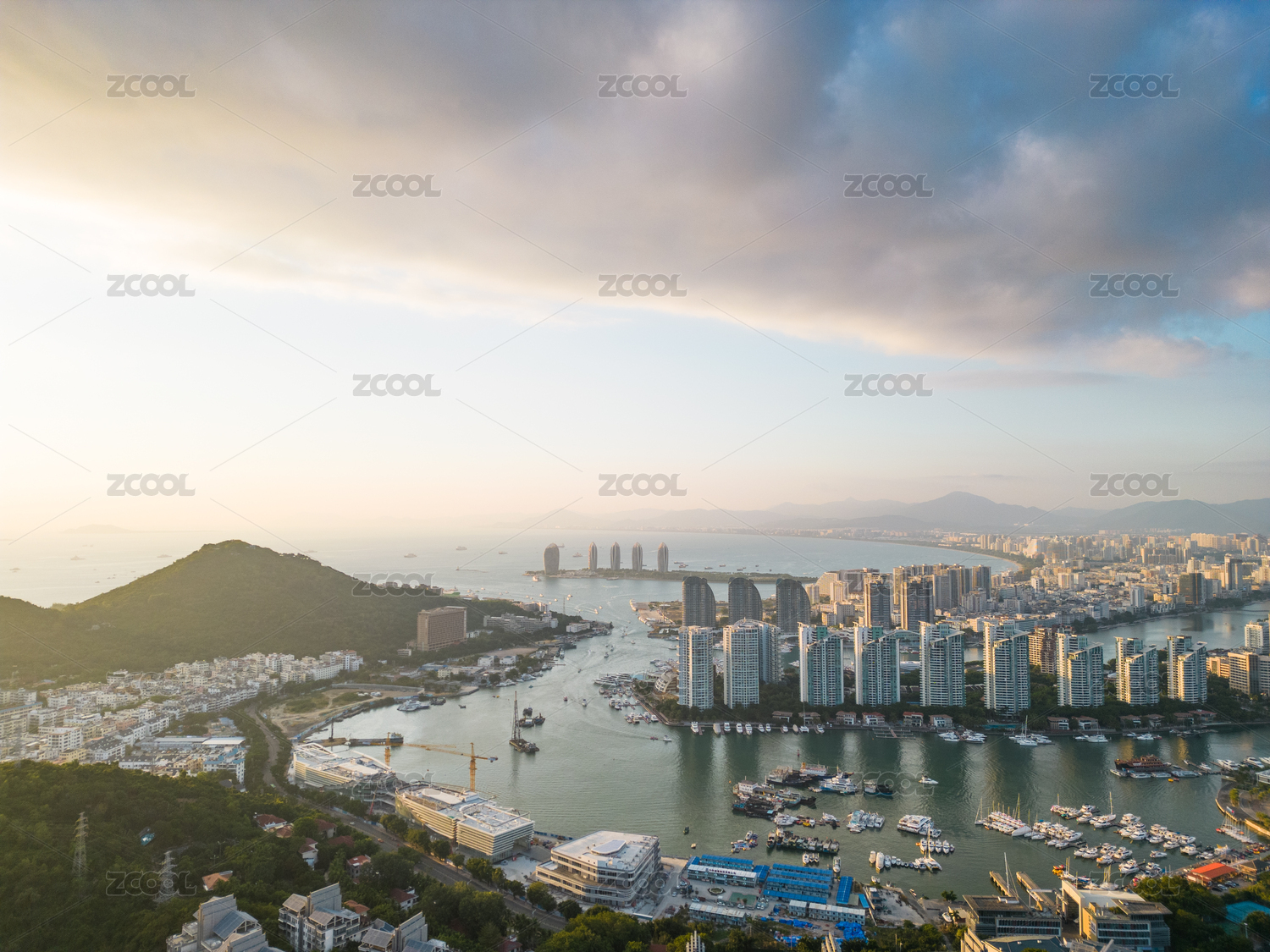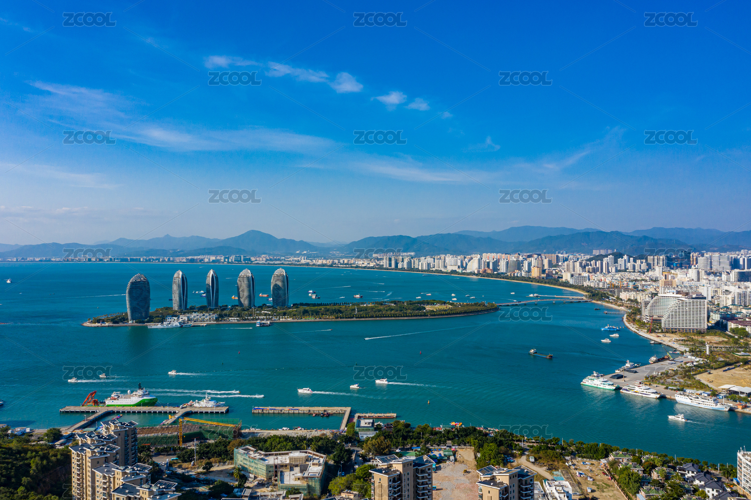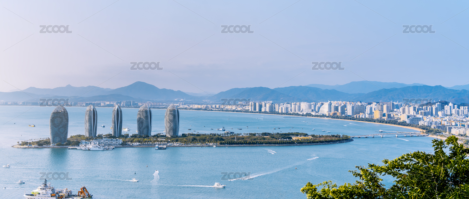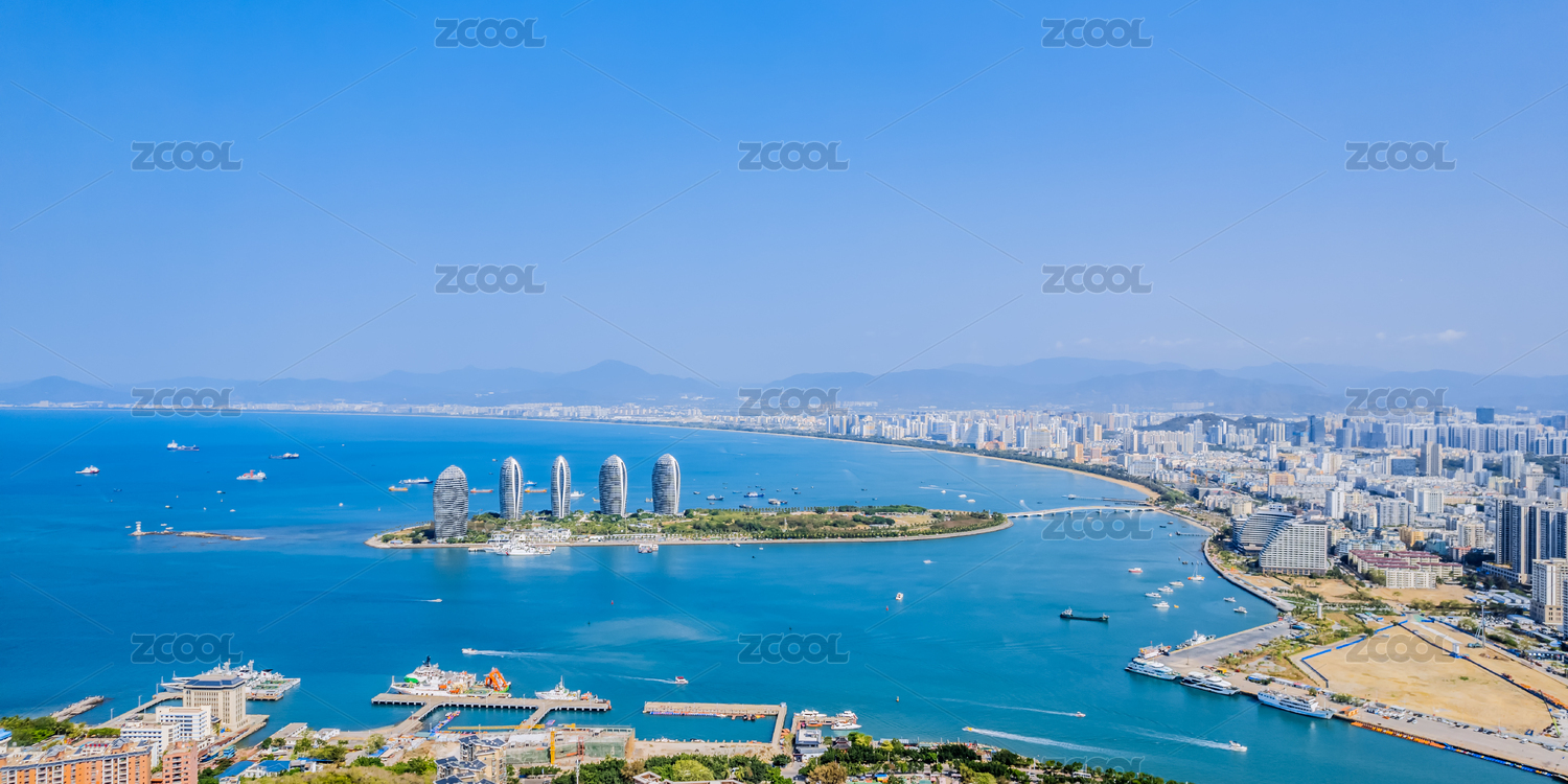 三亚三亚湾游艇码头及周边大东海城市风景航