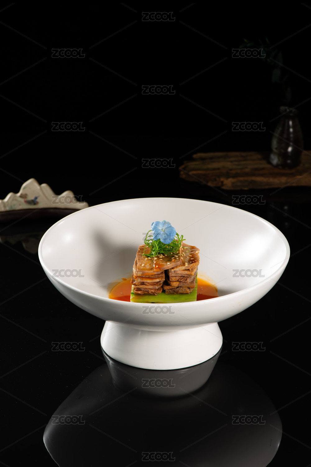 q秋葵黑松露鱼子酱大根片配南美鳌虾刺身