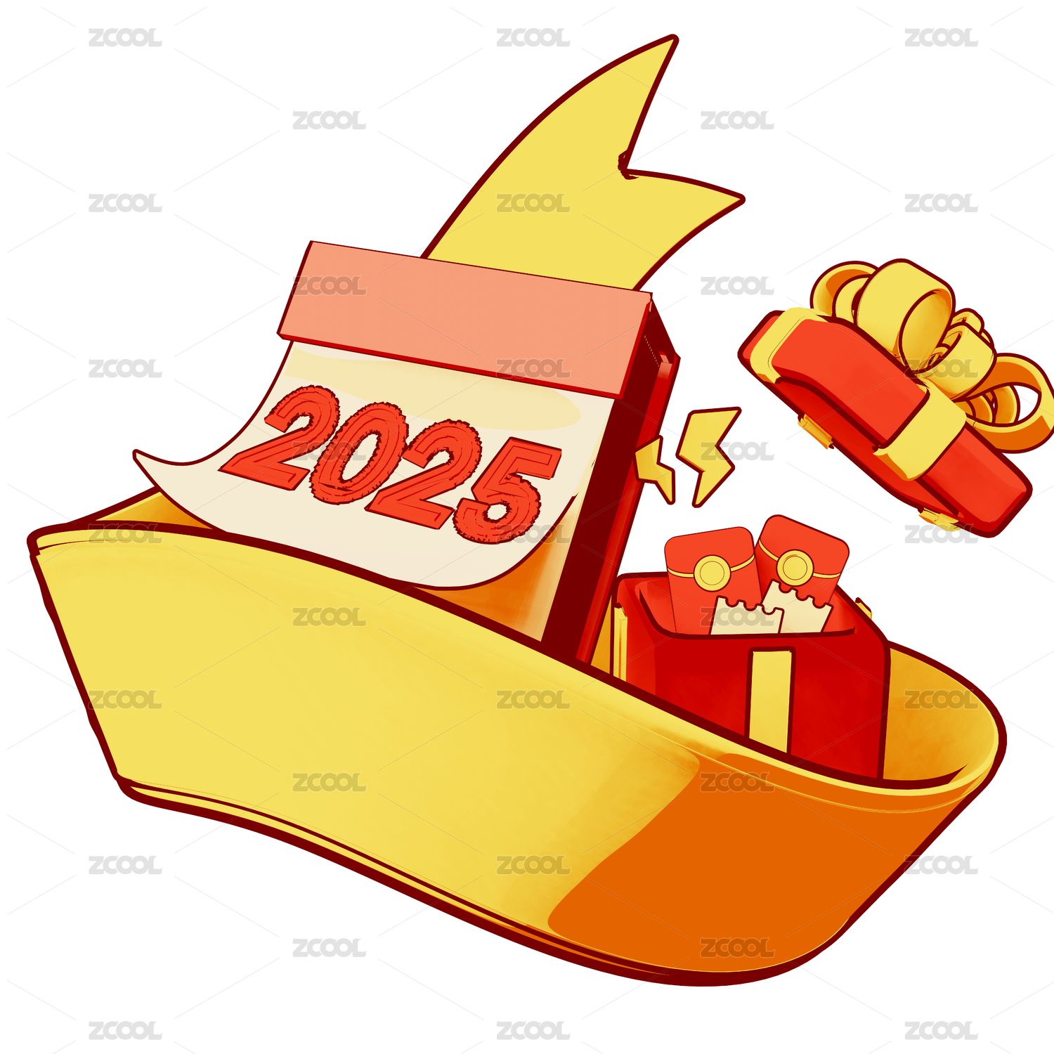 插画,图标,扁平,卡通,红色,新年,2025年,庆祝,元旦,跨年