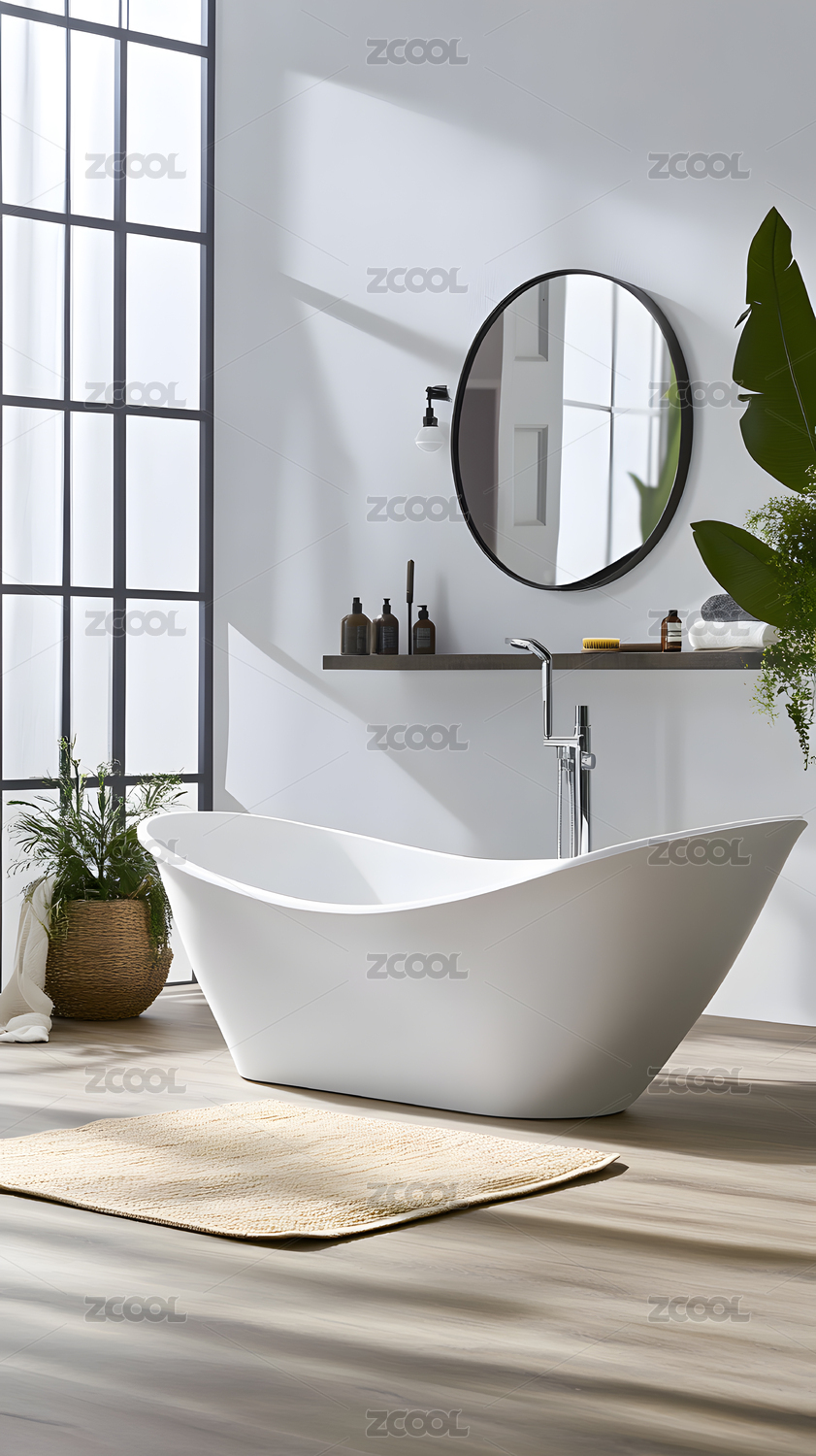 现代风格时尚浴缸浴室内部白色现代浴缸背景