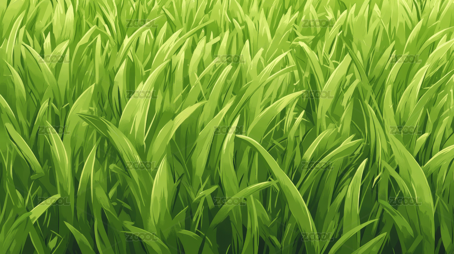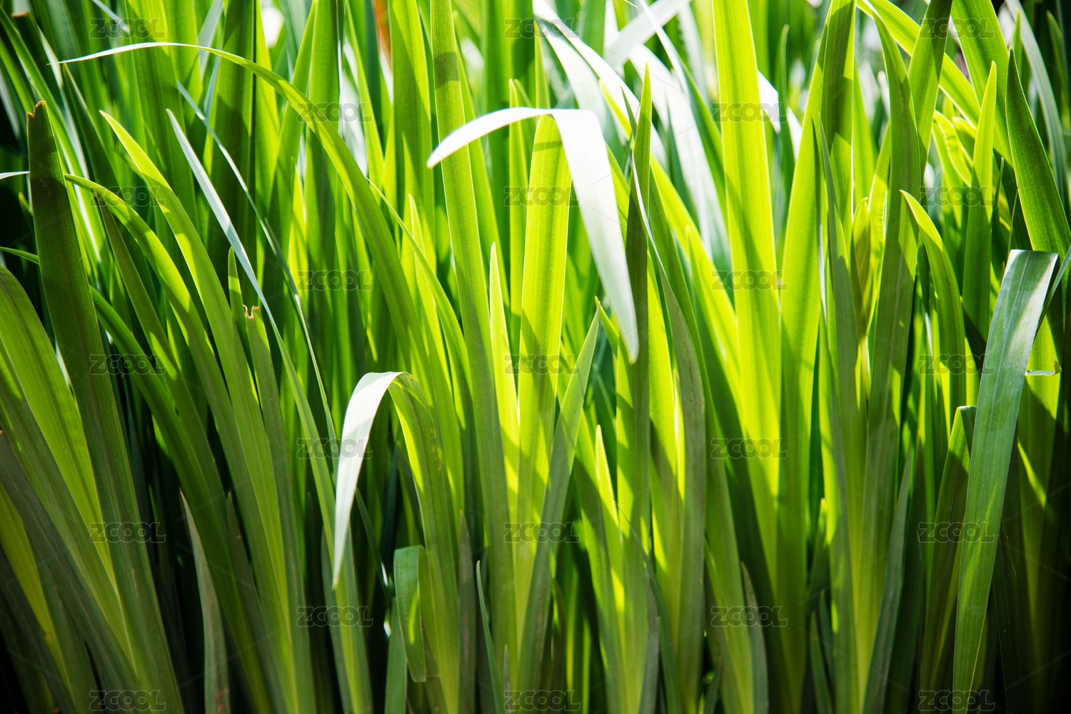 早晨,太阳下一大片绿色有机庄稼小麦苗