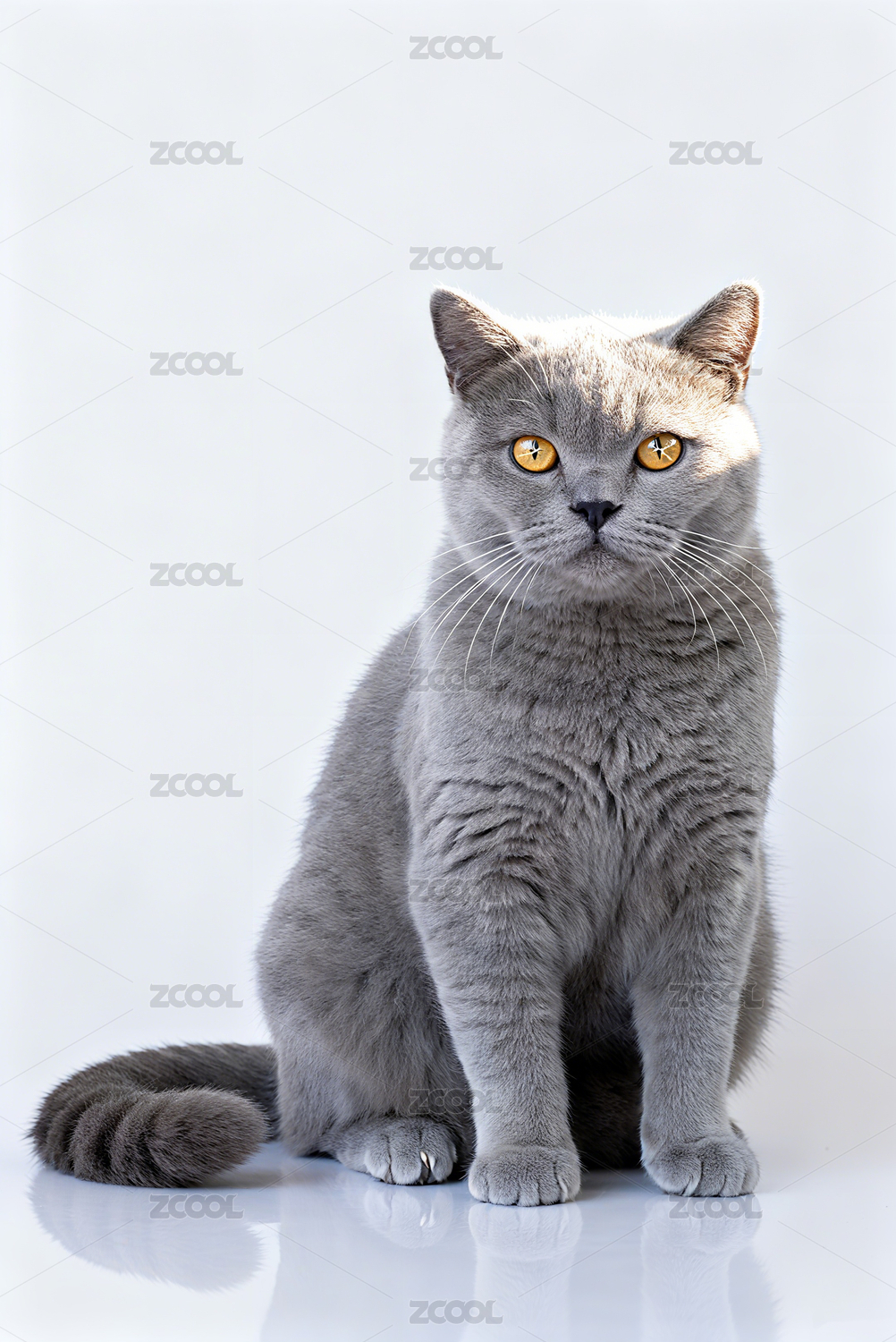 一只浅色花纹短毛猫全身照
