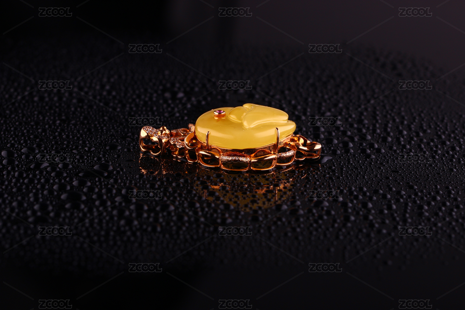 琥珀蜜蜡镶嵌18K金项链吊坠鸡油黄色中式复古佛家禅意的天然珠宝在深色背景中