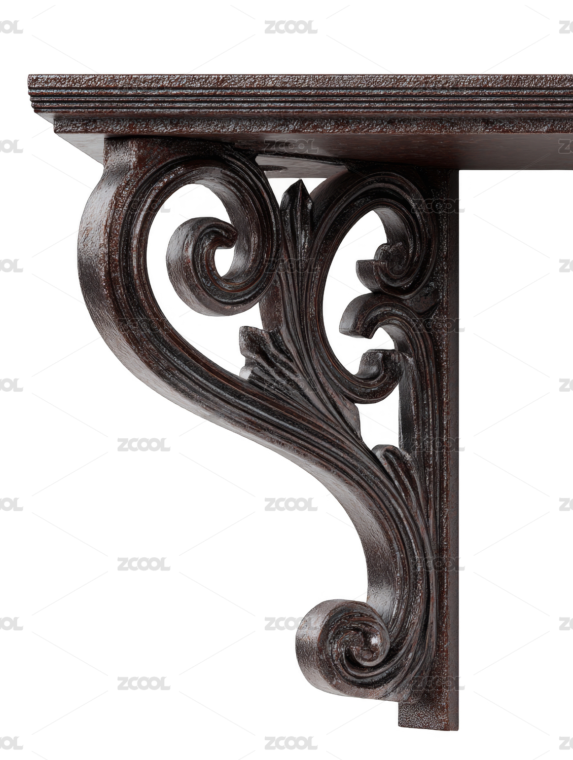 带有卷草纹雕刻的木质支架