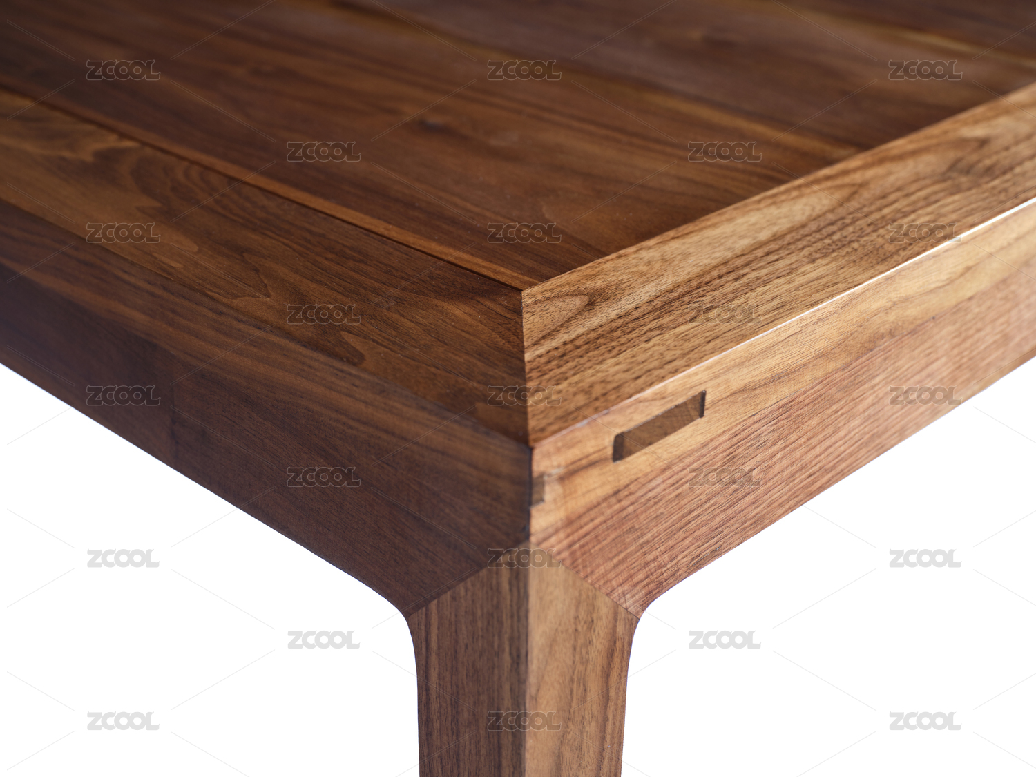 黑胡桃木新中式长桌桌角和伸缩缝特写