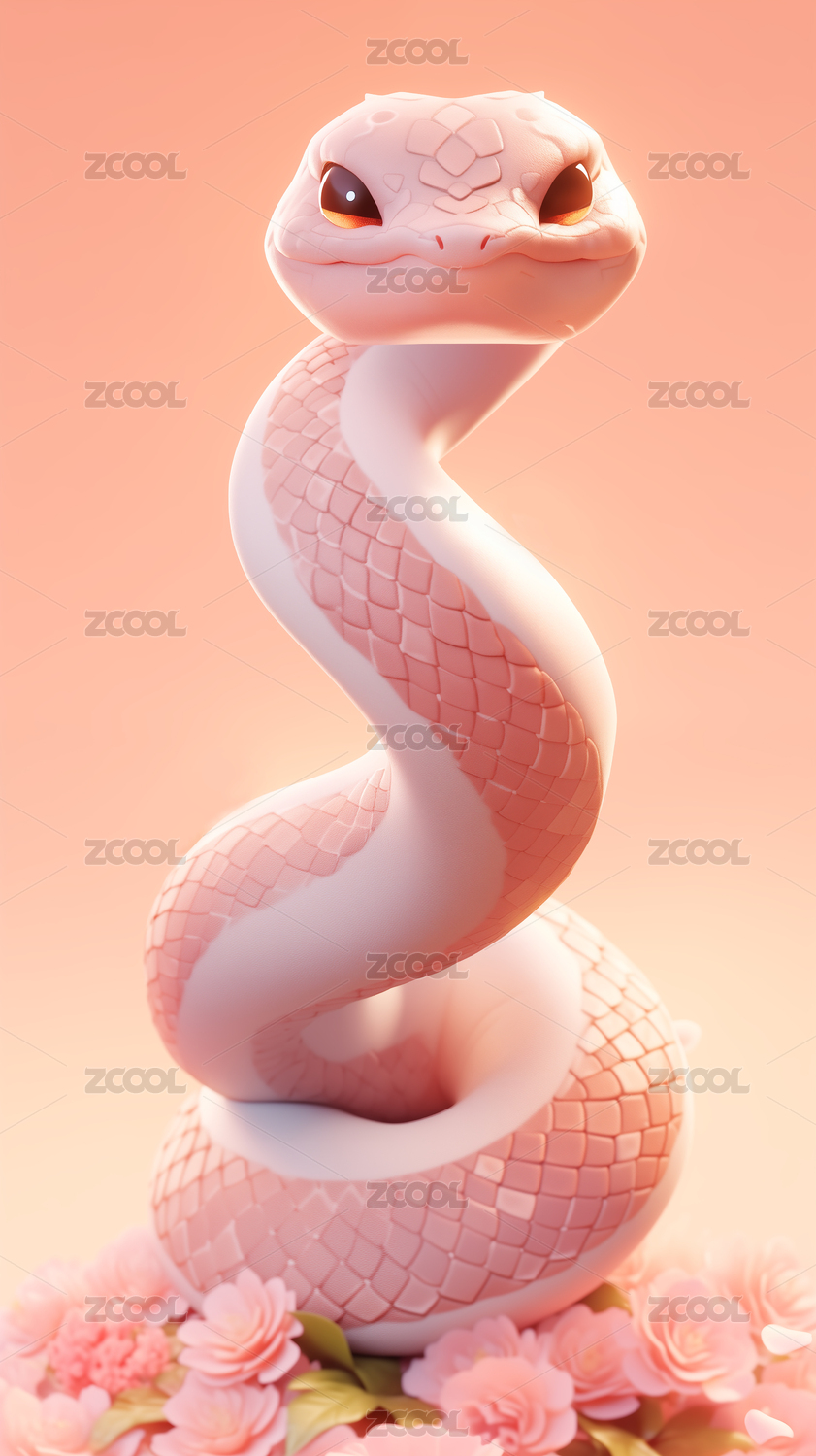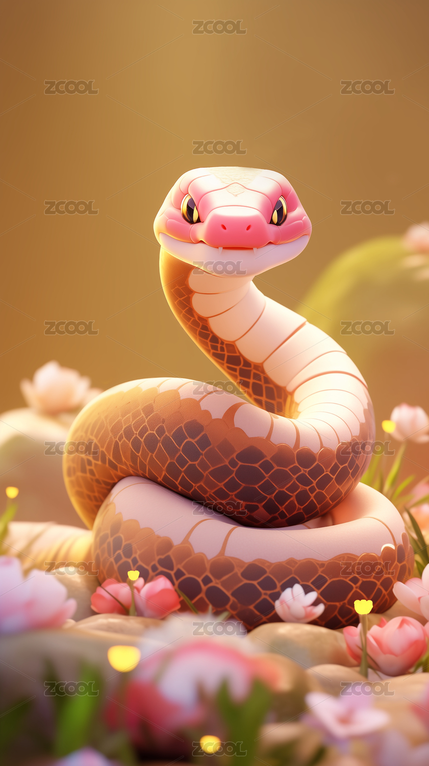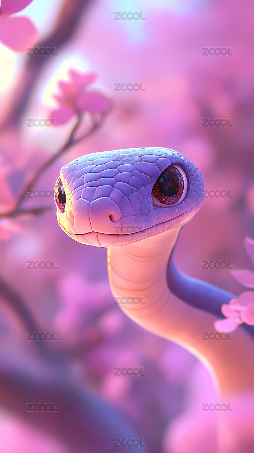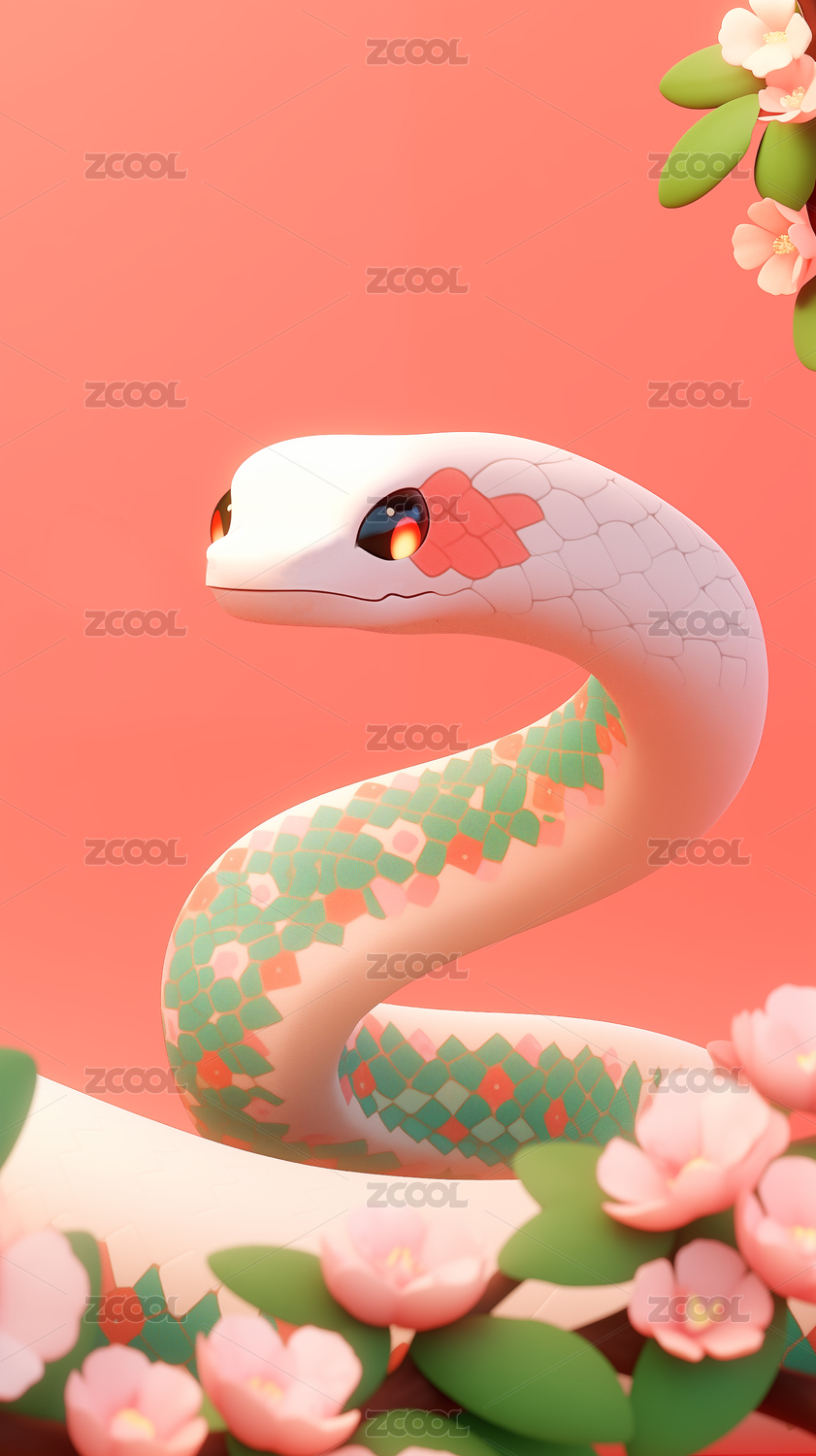 蛇蛇年可爱唯美野生动物3D卡通插画壁纸