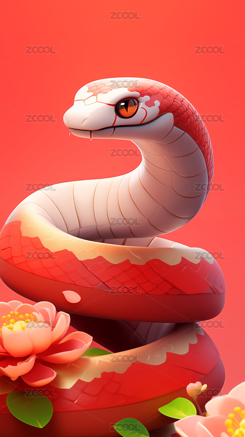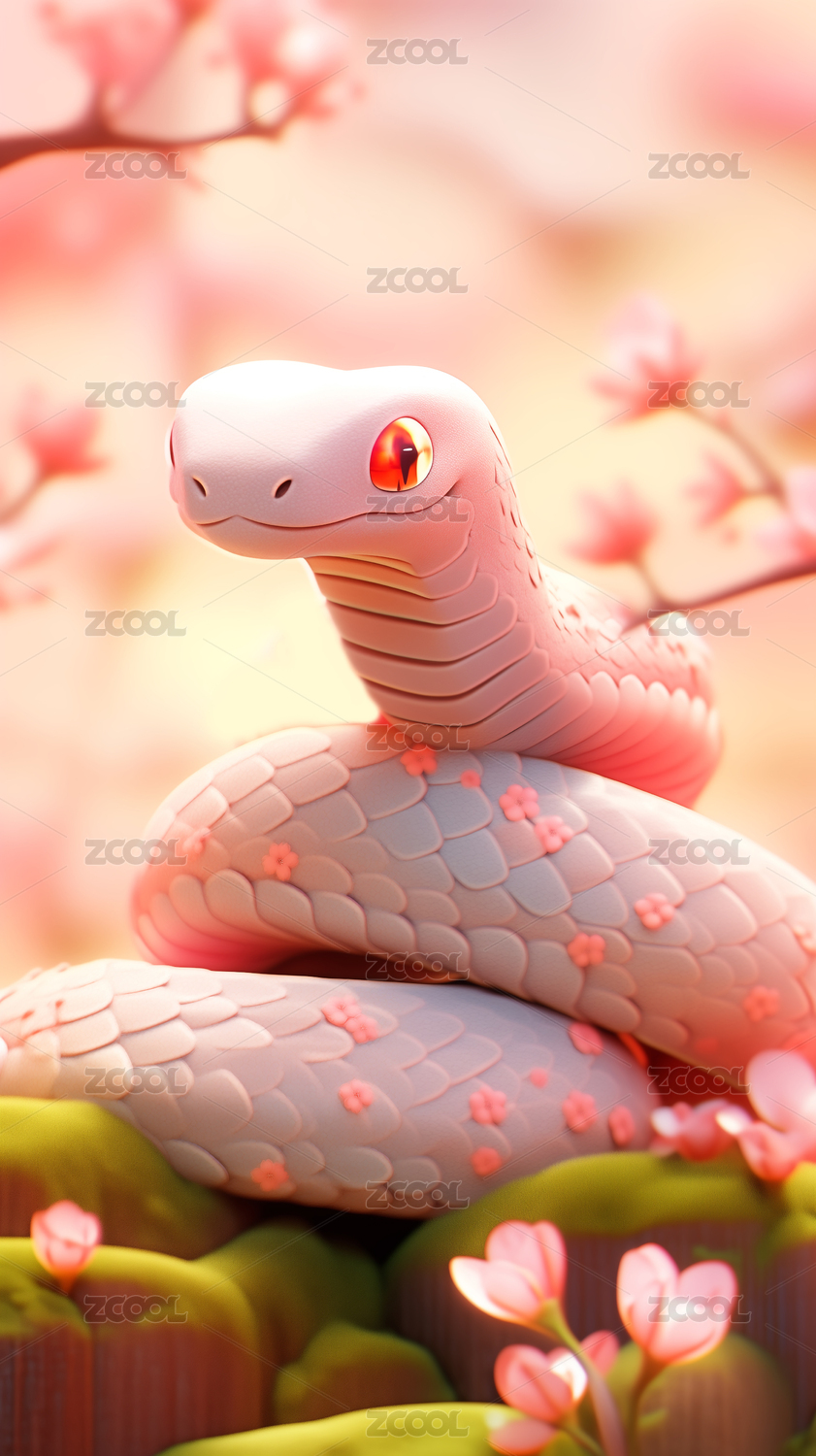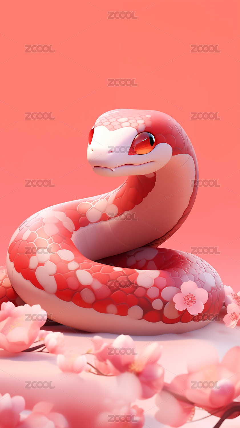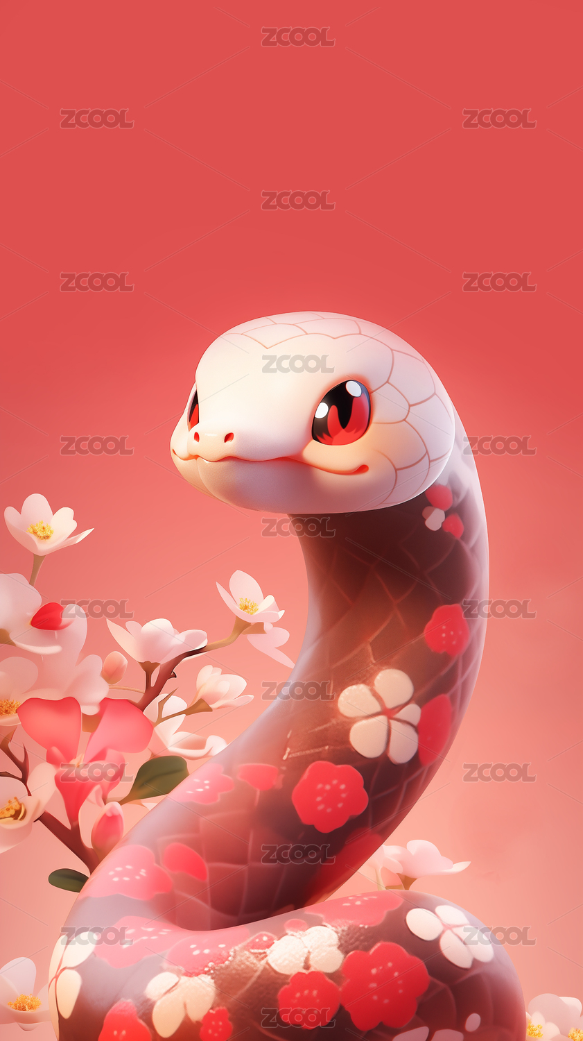 蛇蛇年可爱唯美野生动物3D卡通插画壁纸