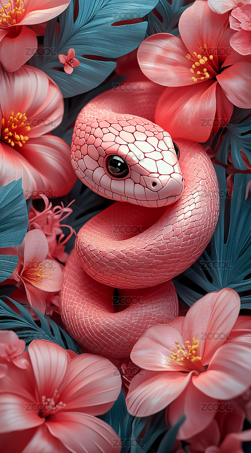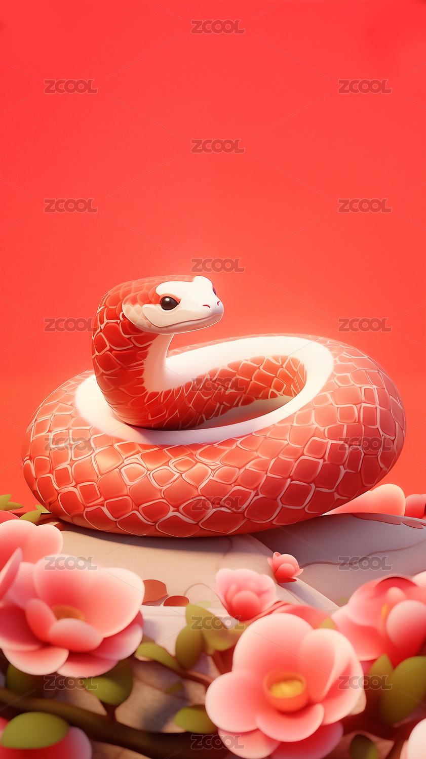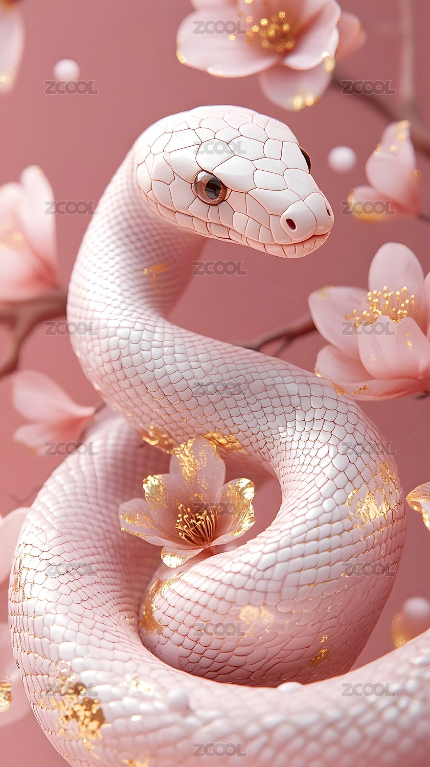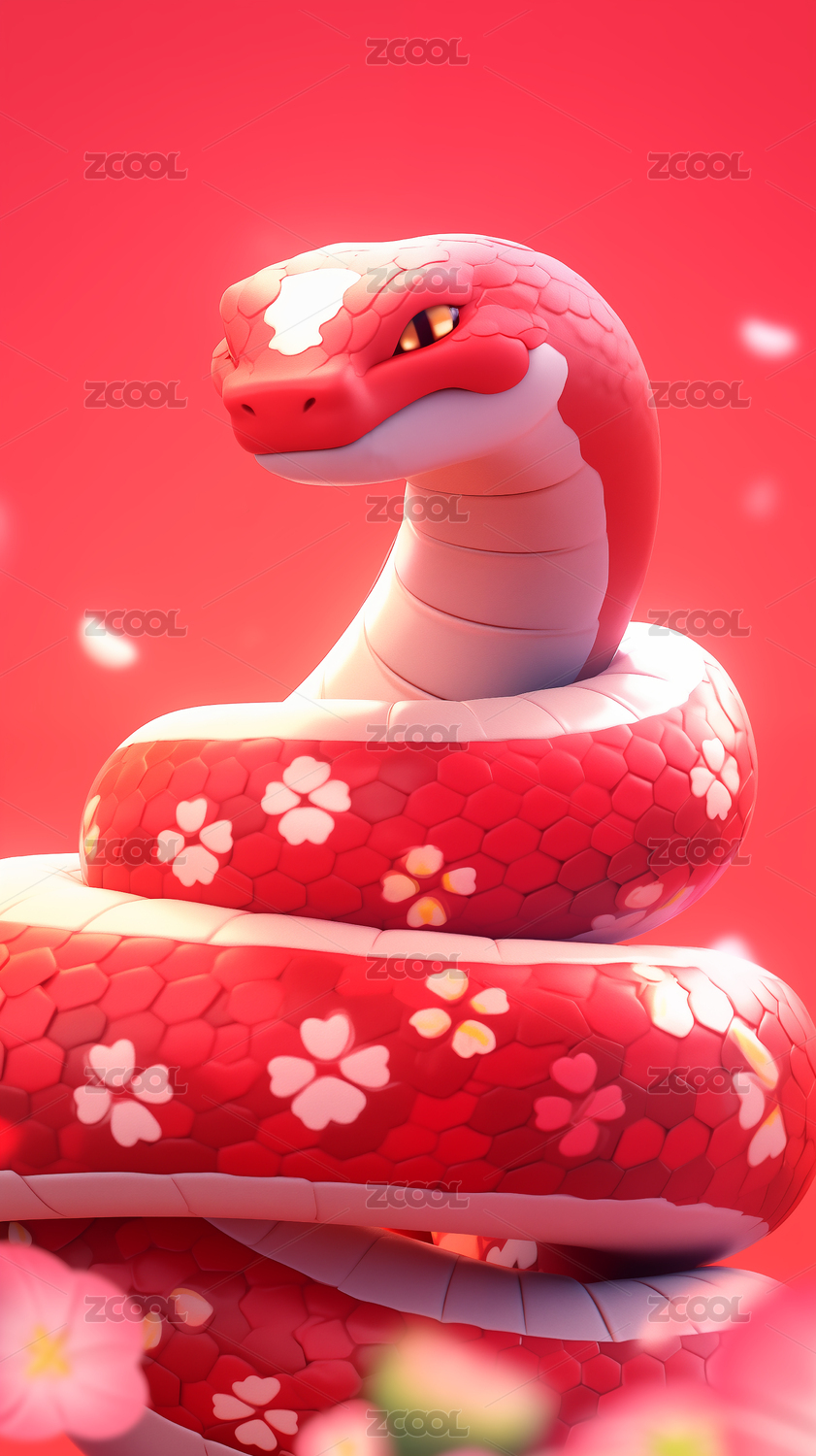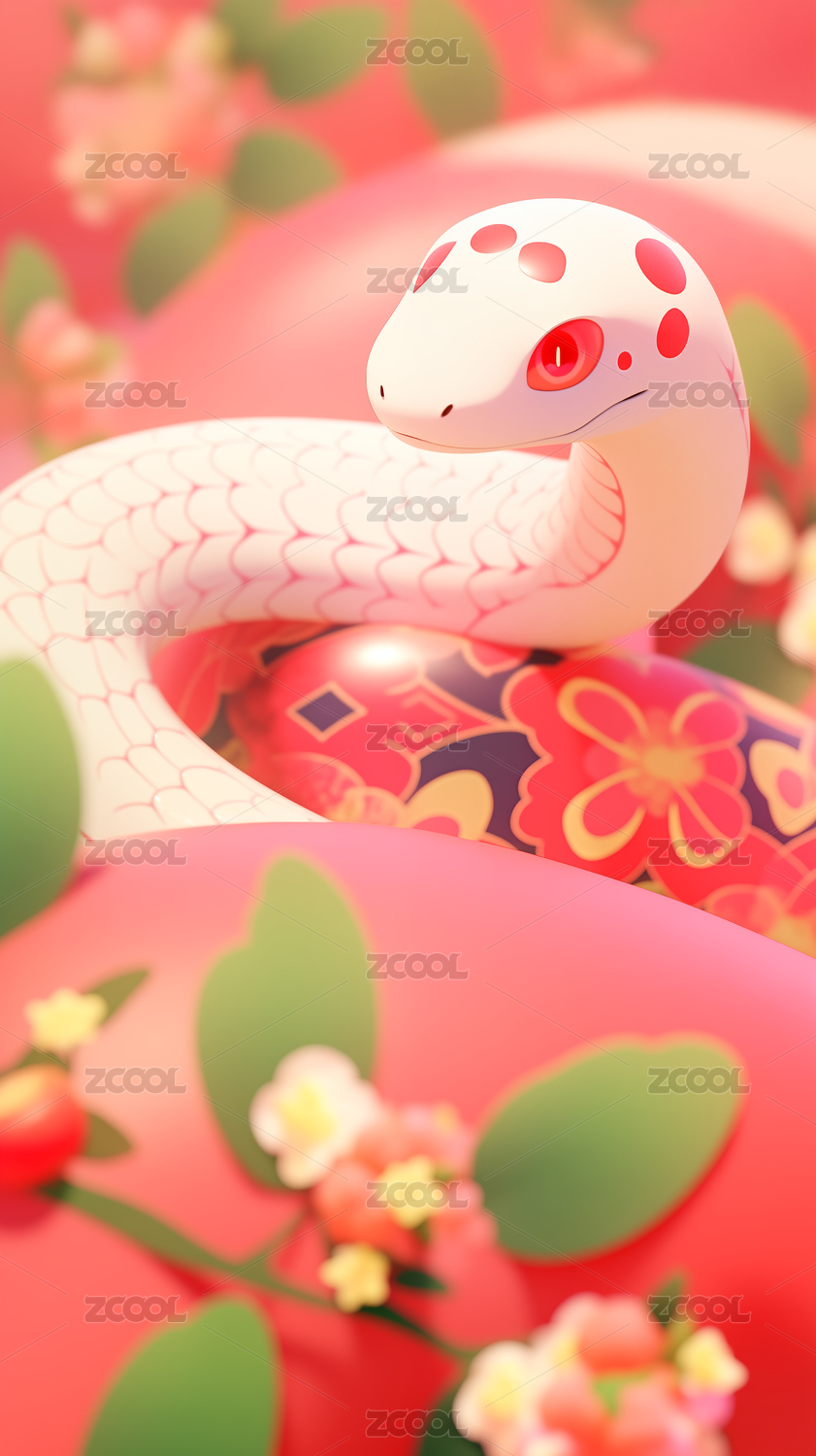蛇蛇年可爱唯美野生动物3D卡通插画壁纸