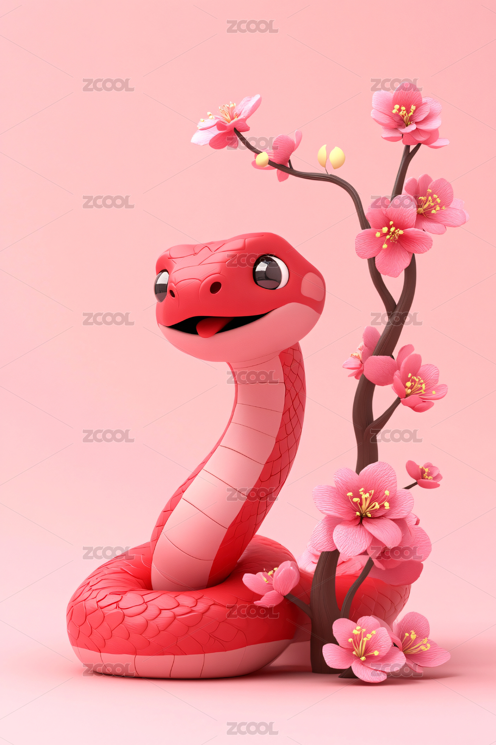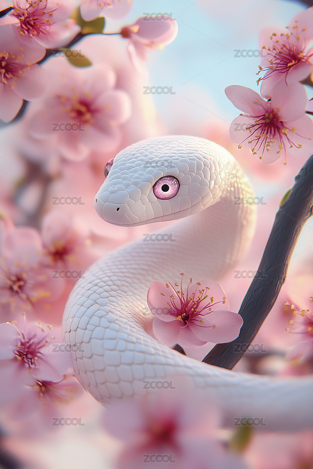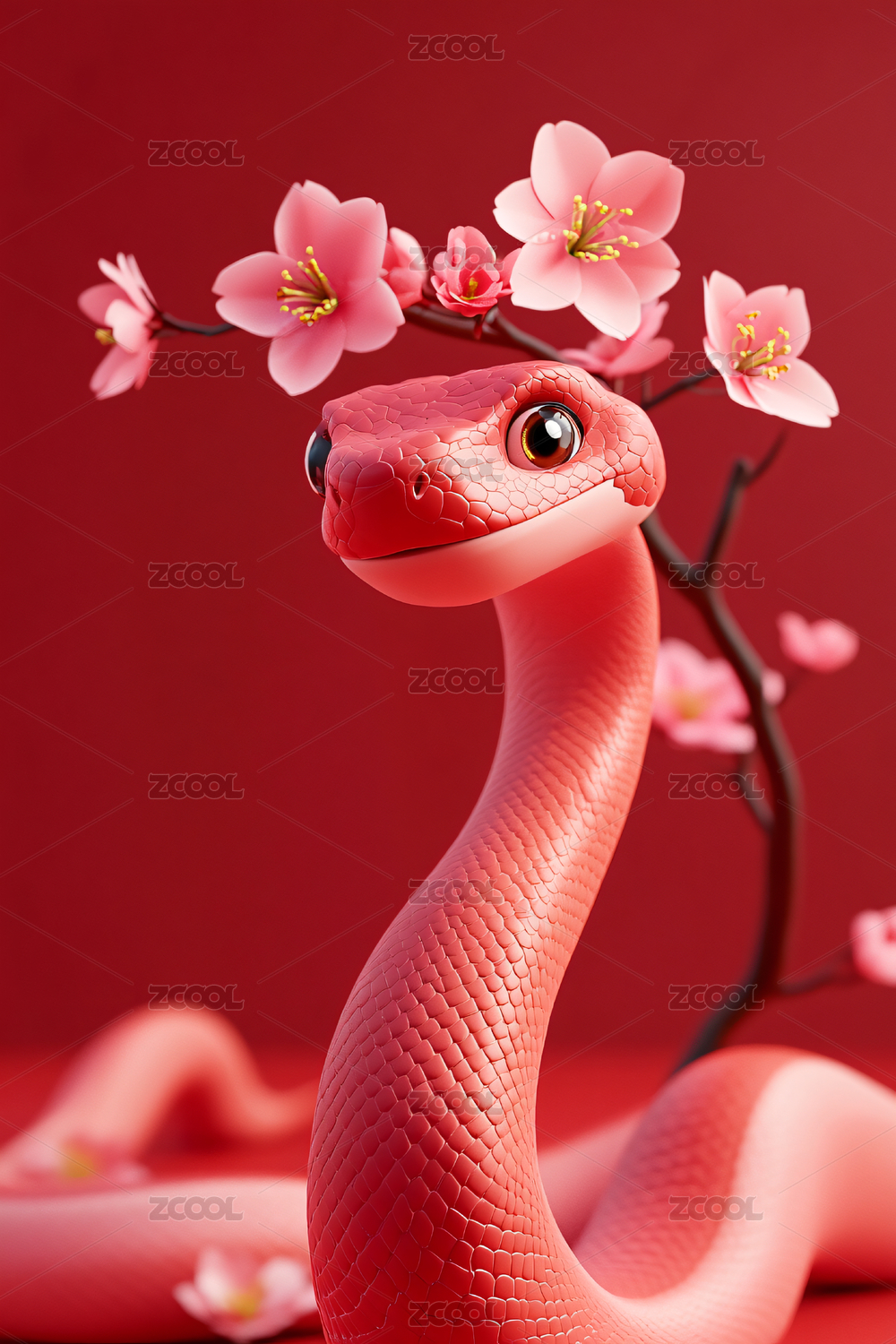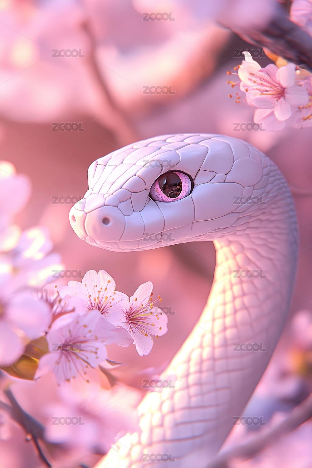 蛇蛇年可爱唯美野生动物3D卡通插画壁纸