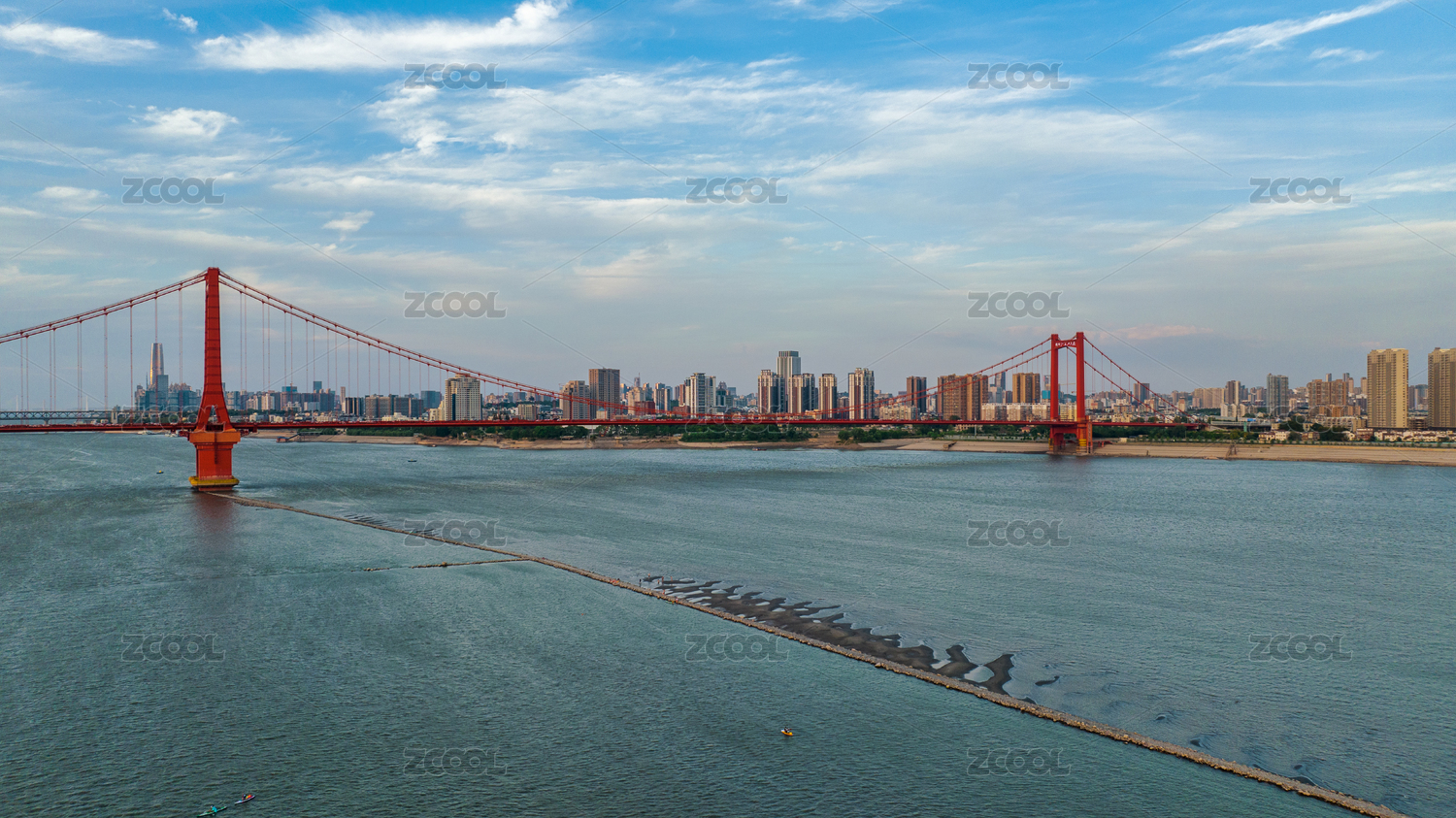 湖北省武汉市鹦鹉洲长江大桥建筑航拍风光