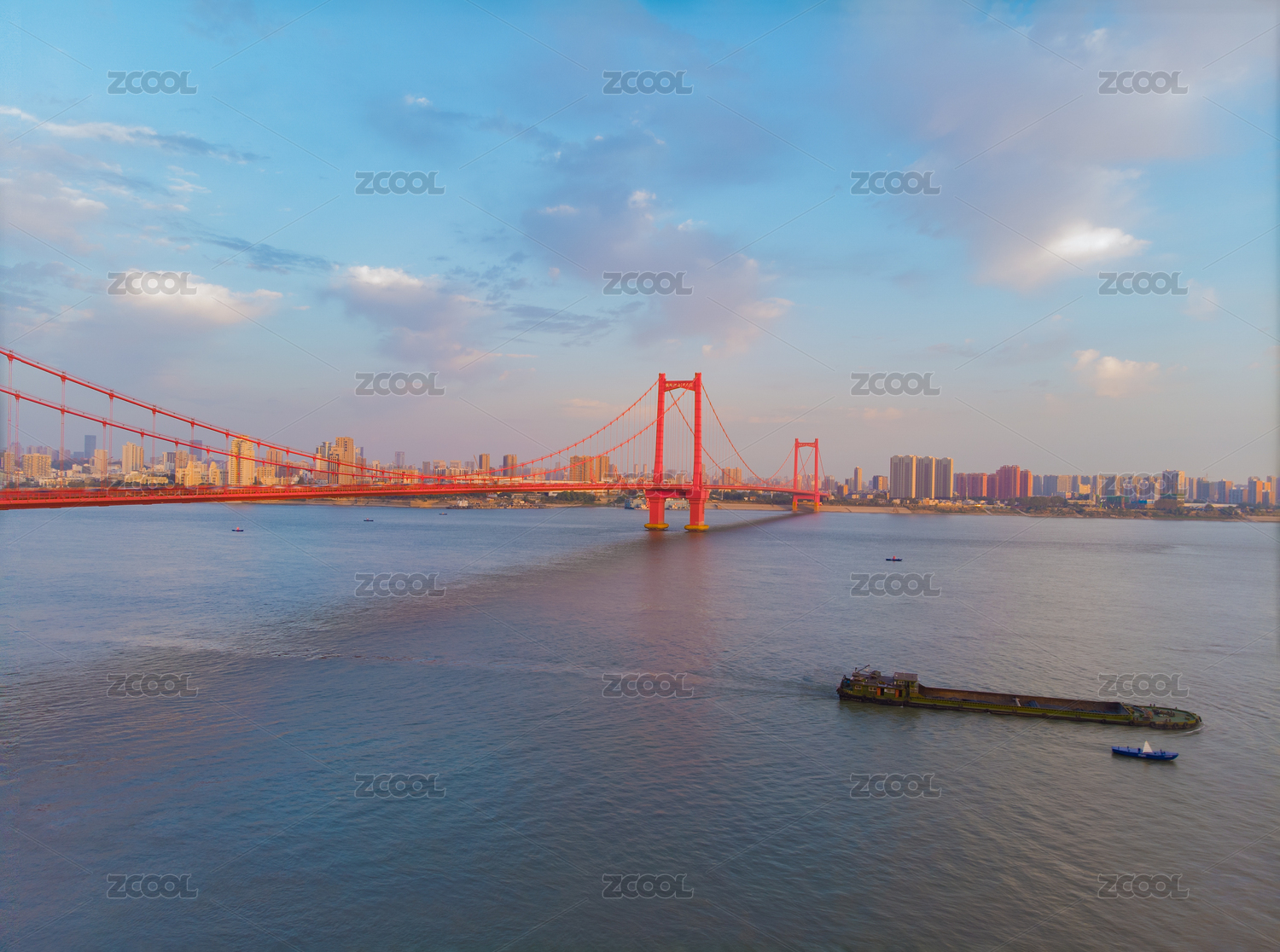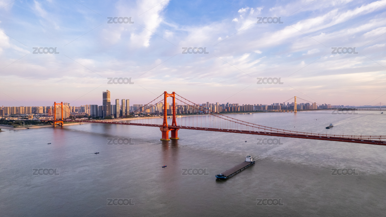 中国湖北武汉鹦鹉洲长江大桥傍晚时光