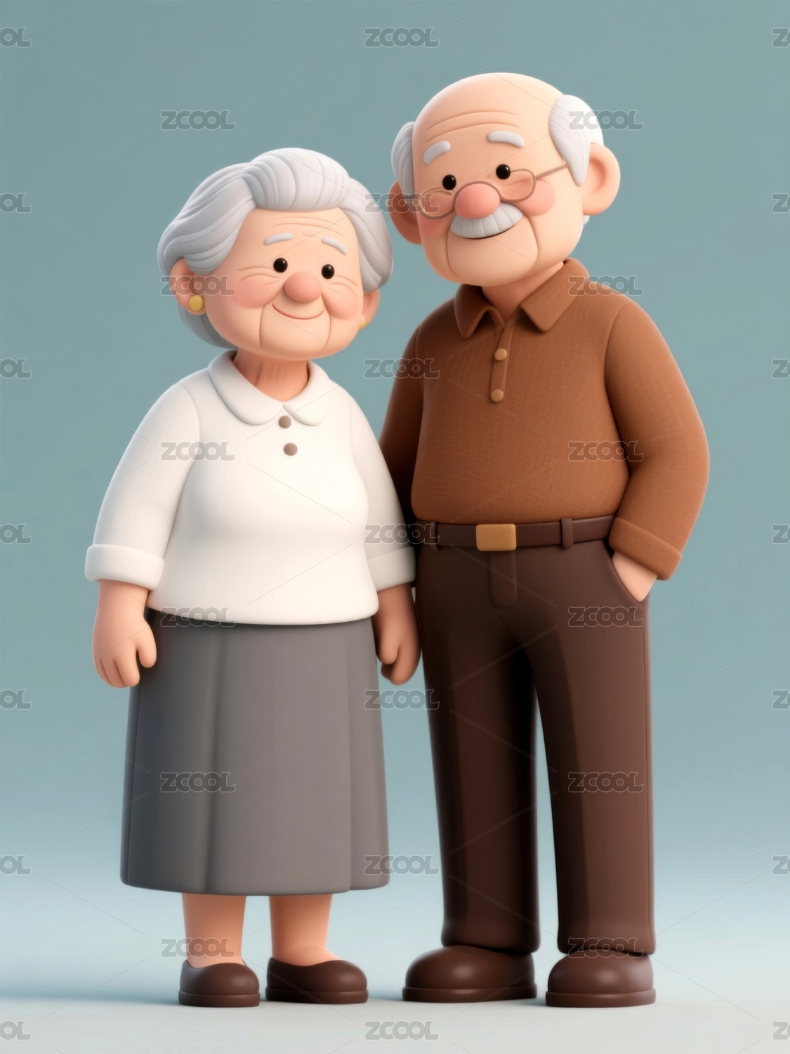 老年夫妇手牵着手3D卡通风格