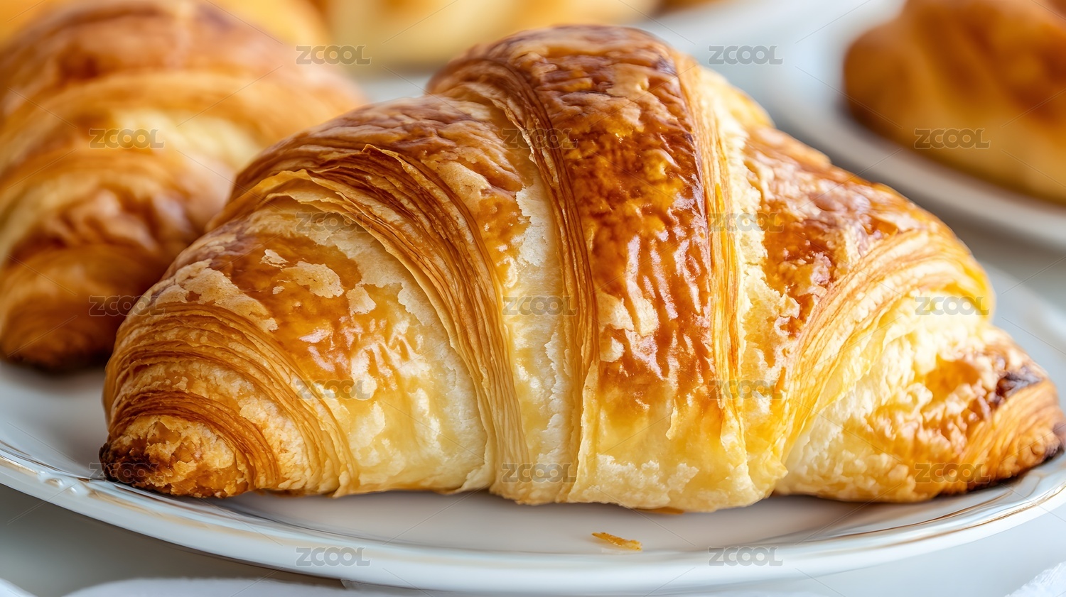 桌面上的盘子里的美味可口的丹麦肠仔包