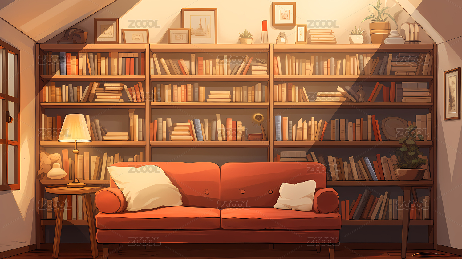 安静的室内书房插画背景