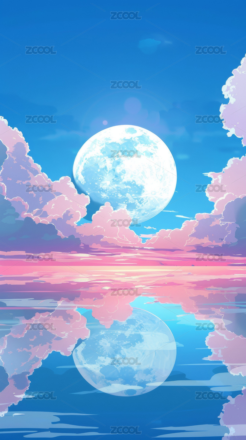 月光,梦幻,云海,插画,星空,夜空,皎洁,云层,唯美,浪漫