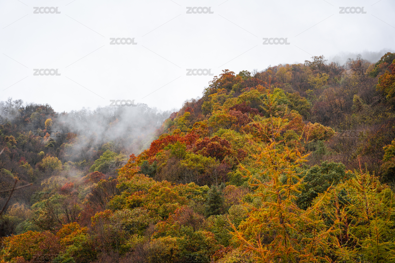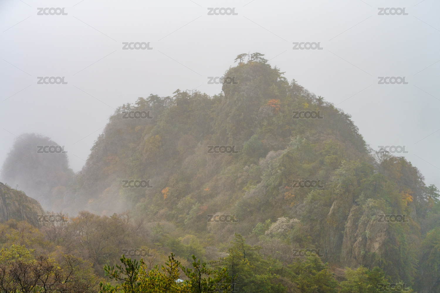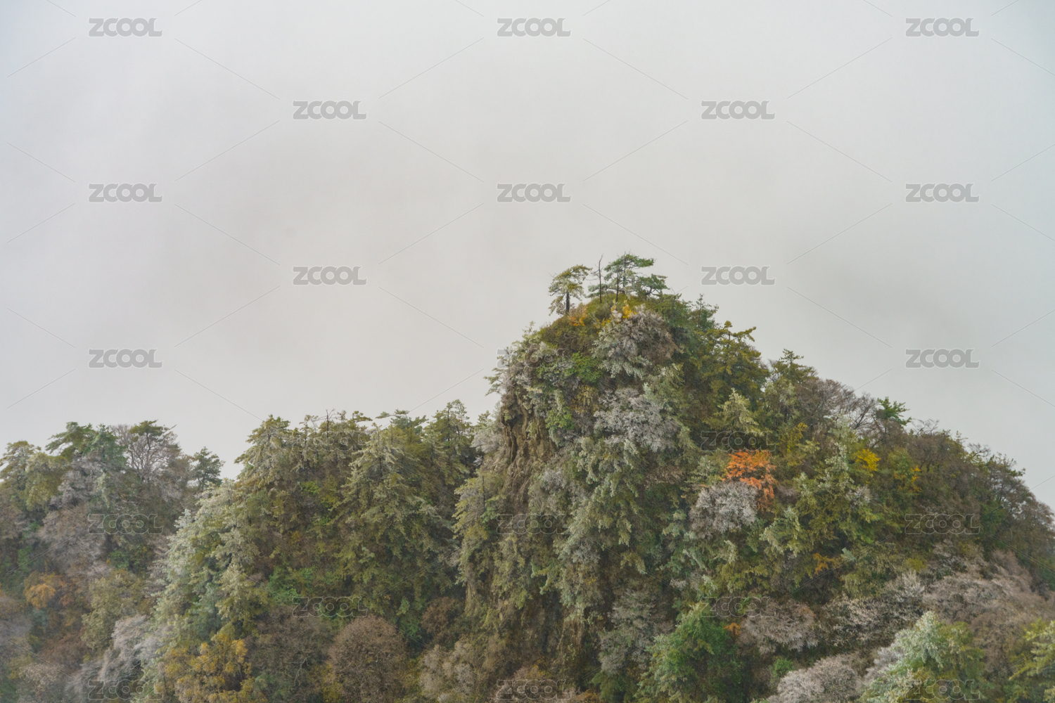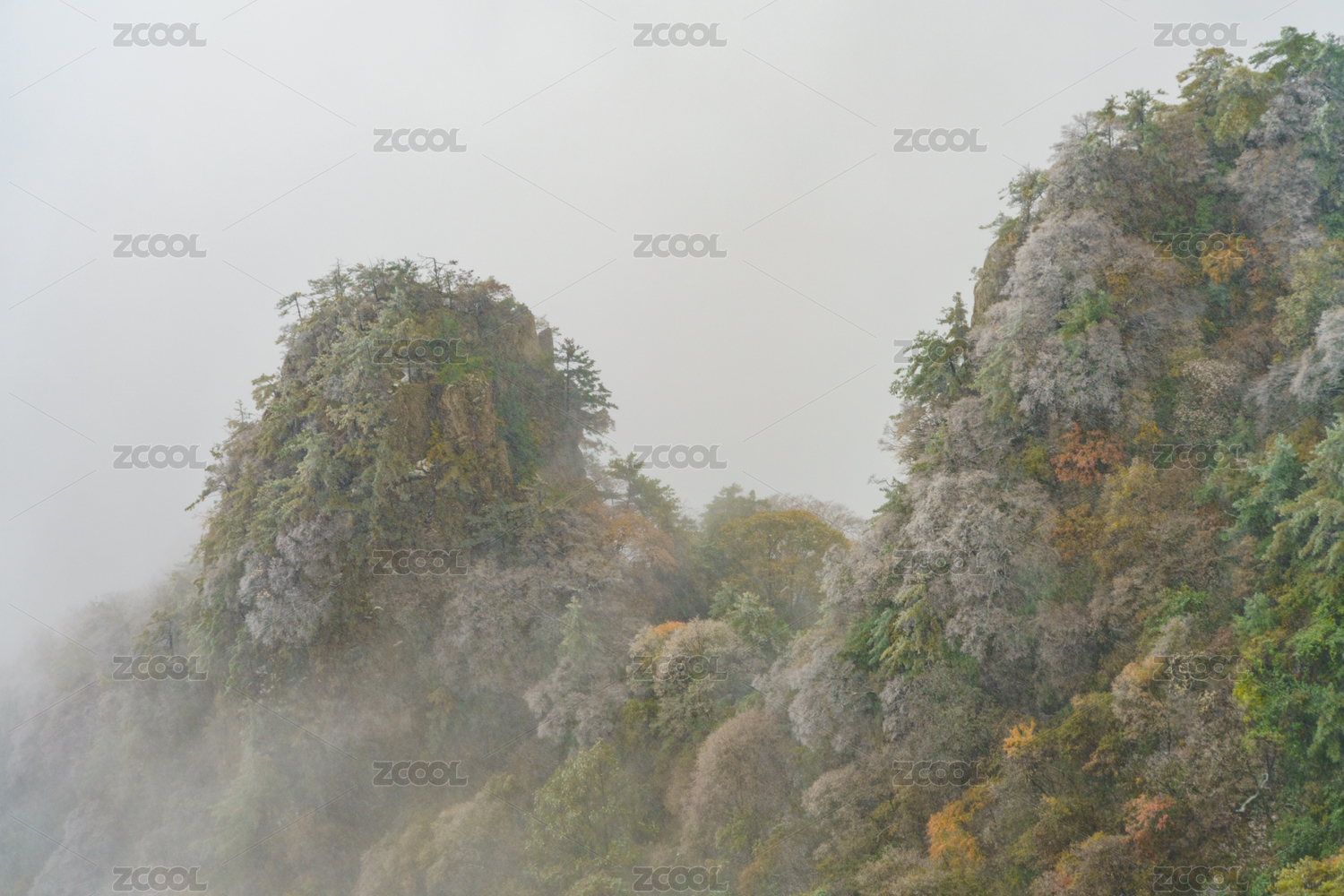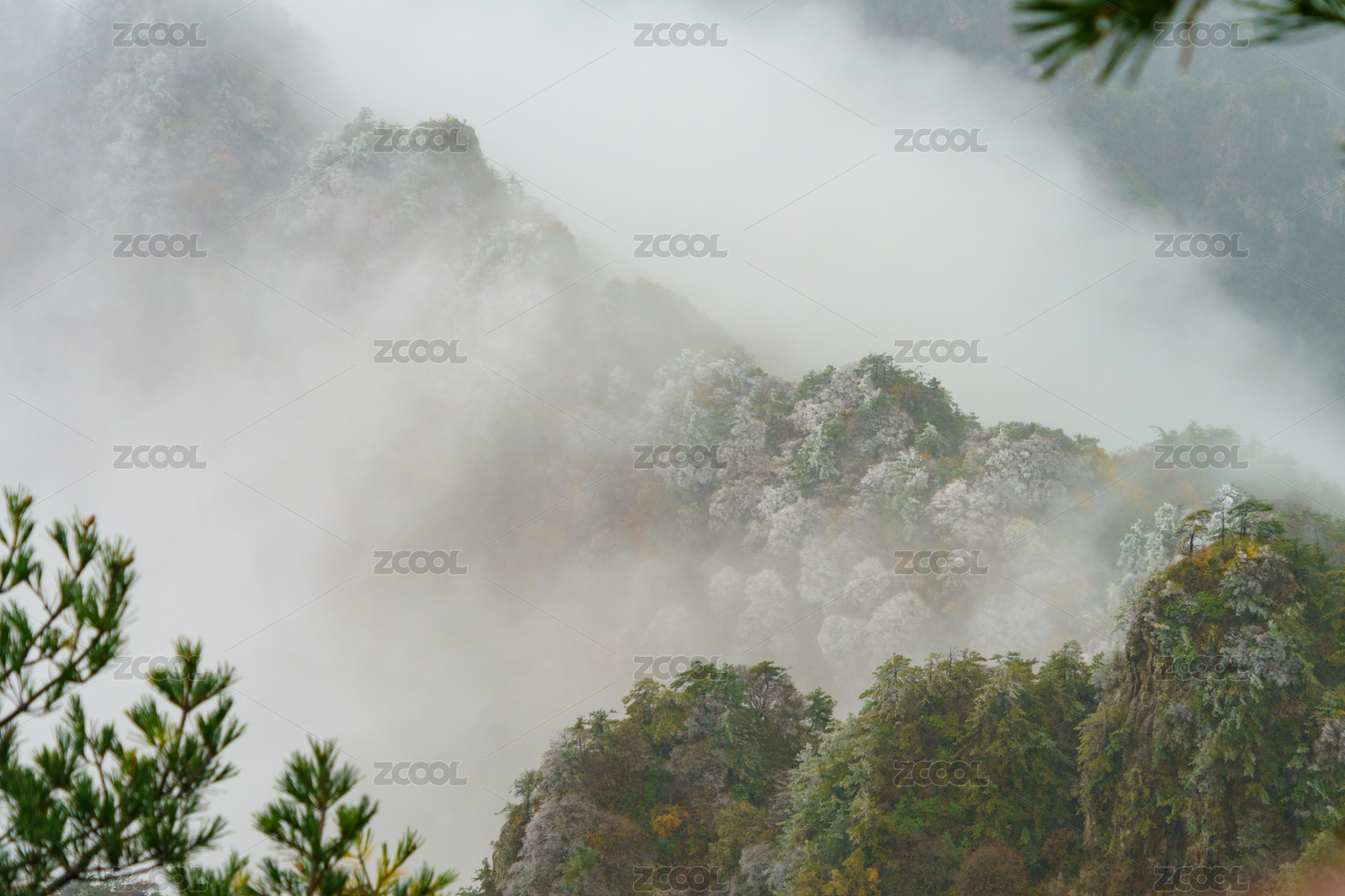 河南省洛阳市栾川县老君山秋季云雾初雪风光