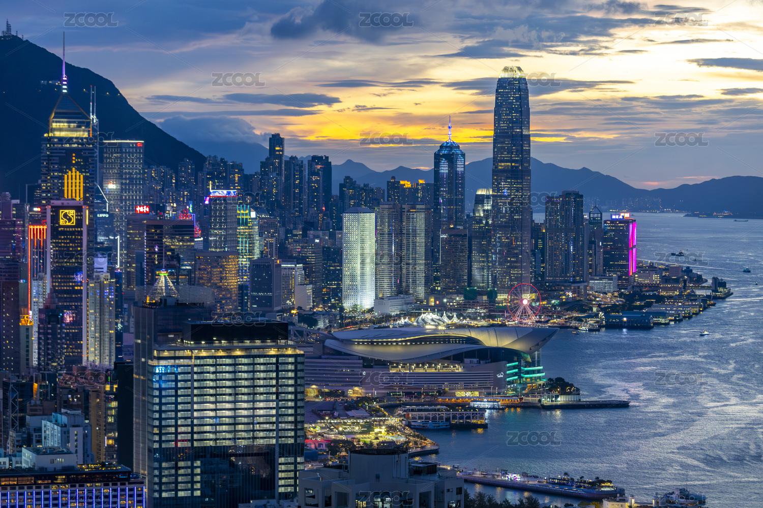 香港,夜景,CBD,金融中心,摩天轮,船,建筑,大海,运输