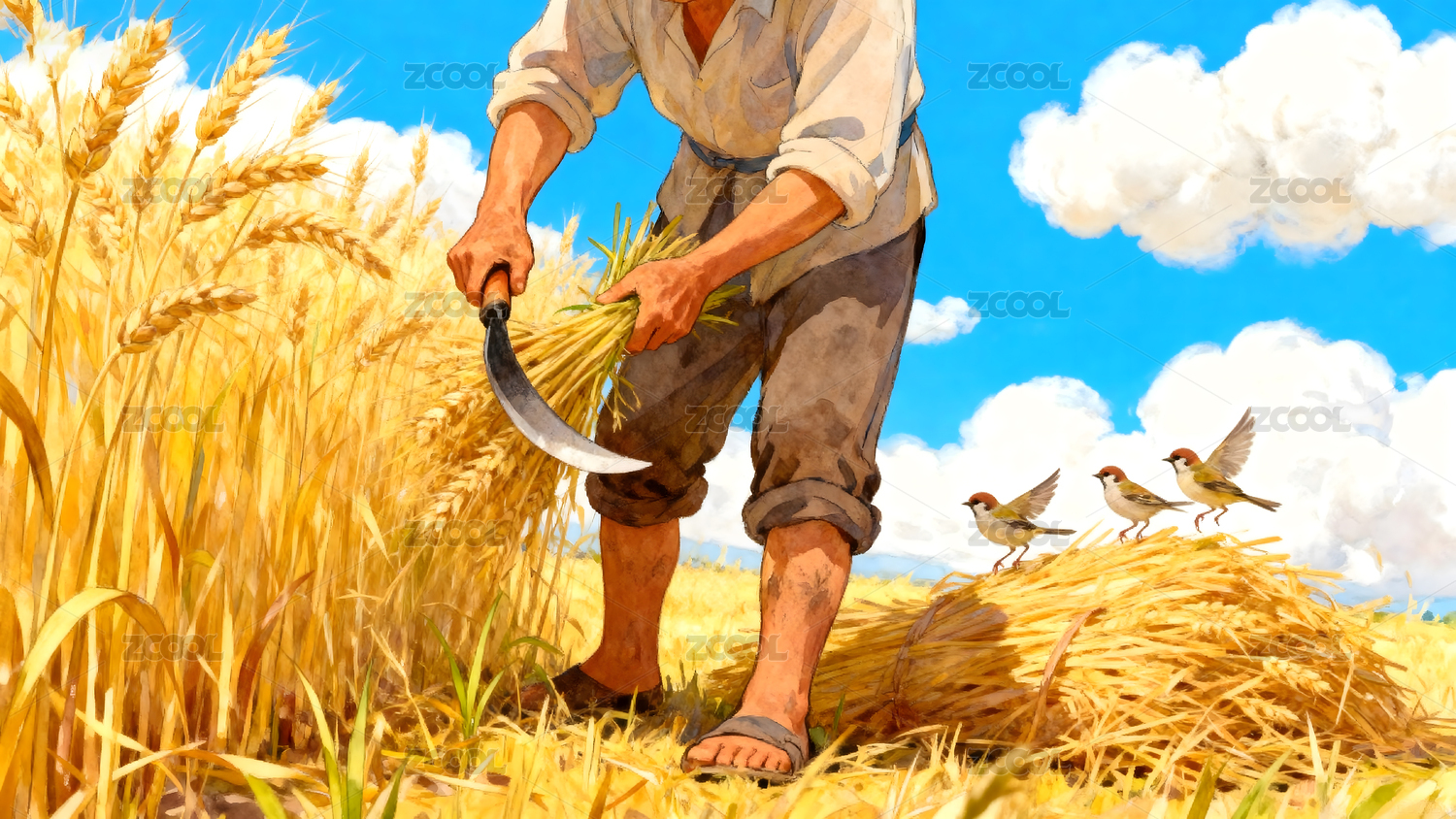 立秋,丰收,节气,秋天,麦子,插画,背景,农民,秋