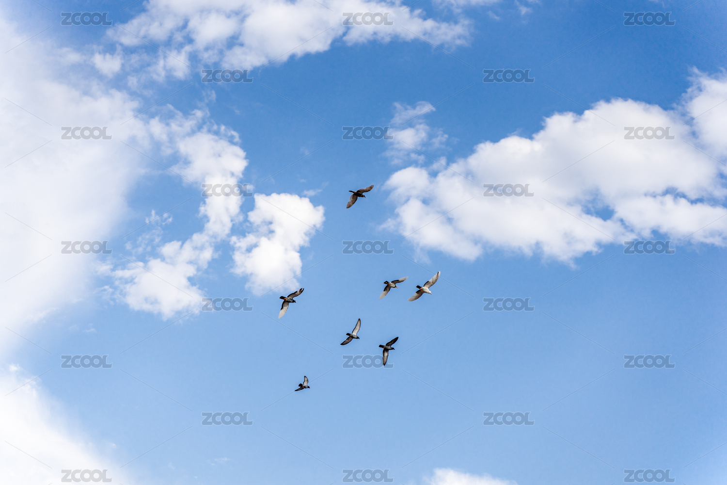 鸽子一群鸟类在天空飞翔蓝天白云