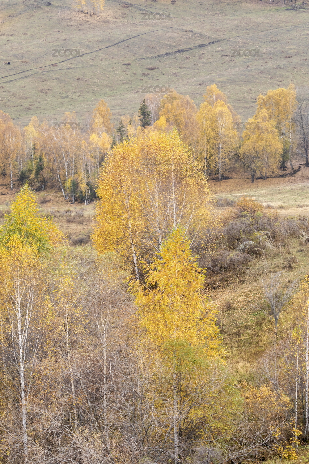 树林,秋色,秋景,金黄色,竖构图,无人,户外,彩色图片,喀纳斯,国家地质公园