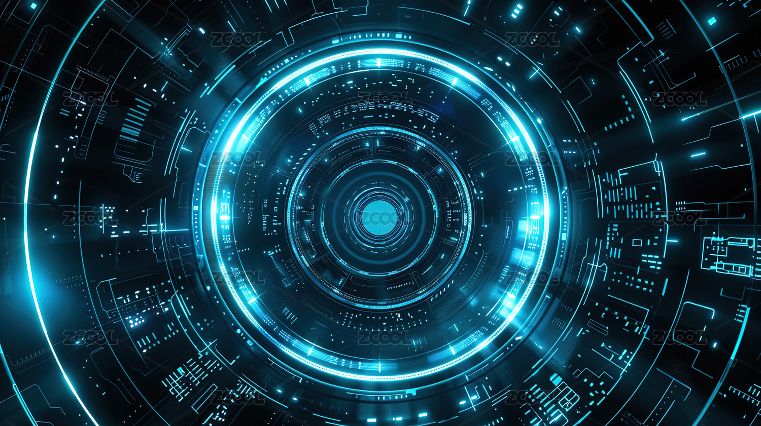 抽象科技蓝色圆环线条光圈对称放射状圆圈