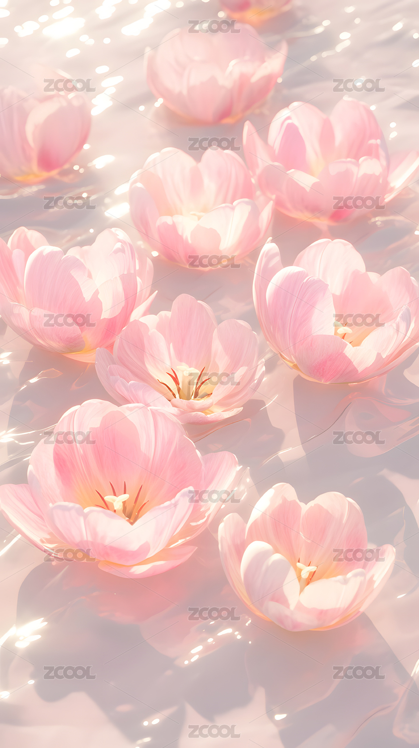 水中唯美花朵插画